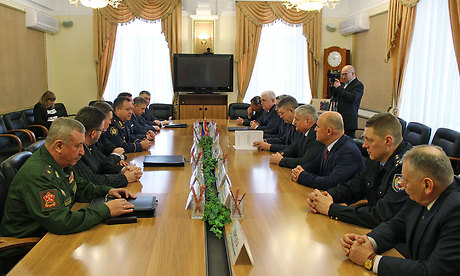 Затем Губернатор провел встречу с руководителями силовых структур региона. В мероприятии приняли участие председатель областной Думы Владимир Попков, главный федеральный инспектор по Брянской области Леонид Соломатин, прокурор Брянской области Александр Войтович, начальник УМВД России по Брянской области Валентин Кузьмин, начальник УФСБ России по Брянской области Сергей Блинов, руководитель Следственного управления Следственного комитета РФ по Брянской области Игорь Литвинов, начальник Пограничного управления ФСБ России по Брянской области Сергей Станкевич, начальник Центра специальной связи и информации федеральной службы охраны РФ в Брянской области Олег Бельский, начальник Брянской таможни Раймондас Петровас, председатель Брянского областного суда Евгений Быков, военный комиссар Брянской области Андрей Соломенцев, заместитель Губернатора Сергей Сергеев.