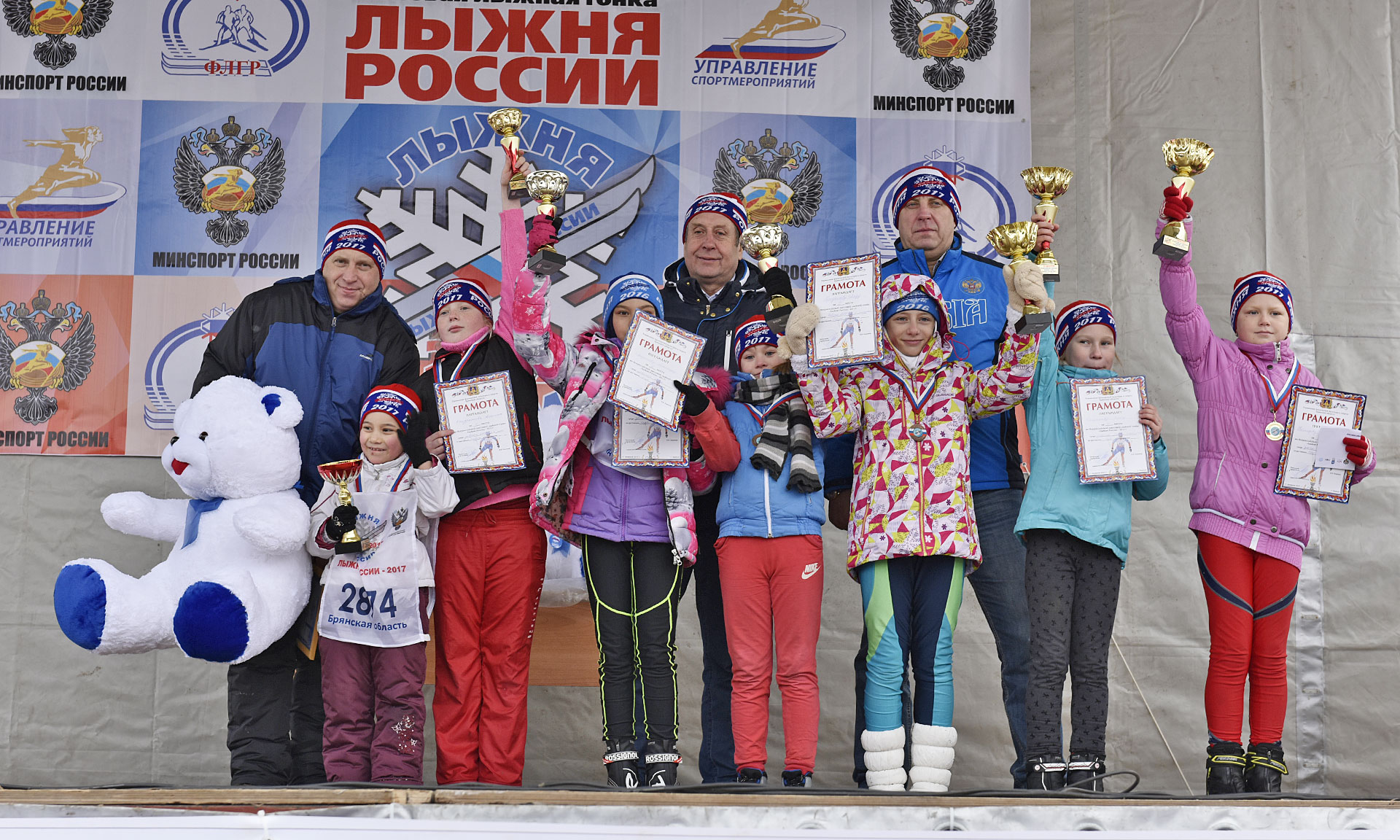 Победители и призёры массовой лыжной гонки «Лыжня России» были награждены кубками, медалями и грамотами Министерства спорта Российской Федерации и управления физической культуры и спорта Брянской области.