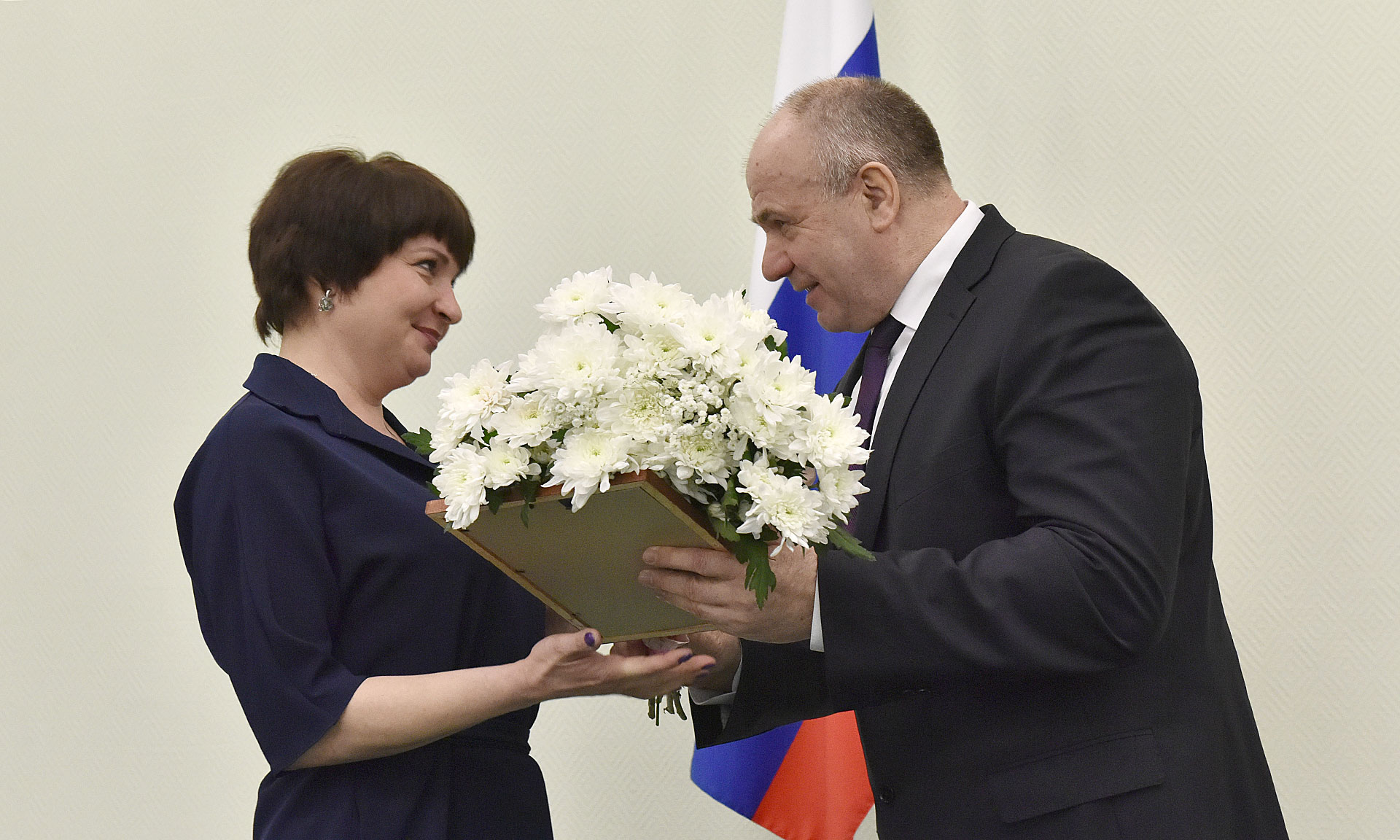 Анатолий Бугаев вручил Почетную грамоту Брянской областной Думы и нагрудный знак руководителю Брянского УФАС России Сергею Ведерникову, а сотрудникам управления — Благодарственные письма Брянской областной Думы.