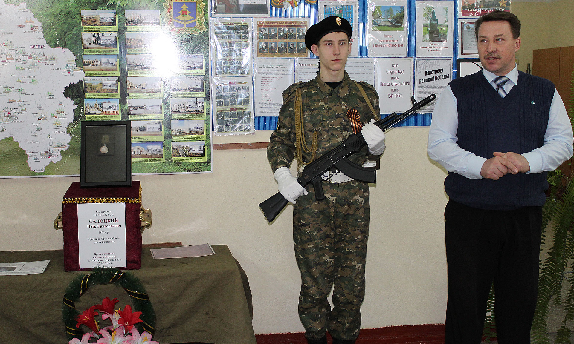 22 февраля в Гордеевском районе состоялась траурная церемония перезахоронения останков солдата Советской Армии Петра Григорьевича Сапоцкого, уроженца деревни Новоселье, погибшего в бою с немецко-фашистскими захватчиками в годы Великой Отечественной войны.