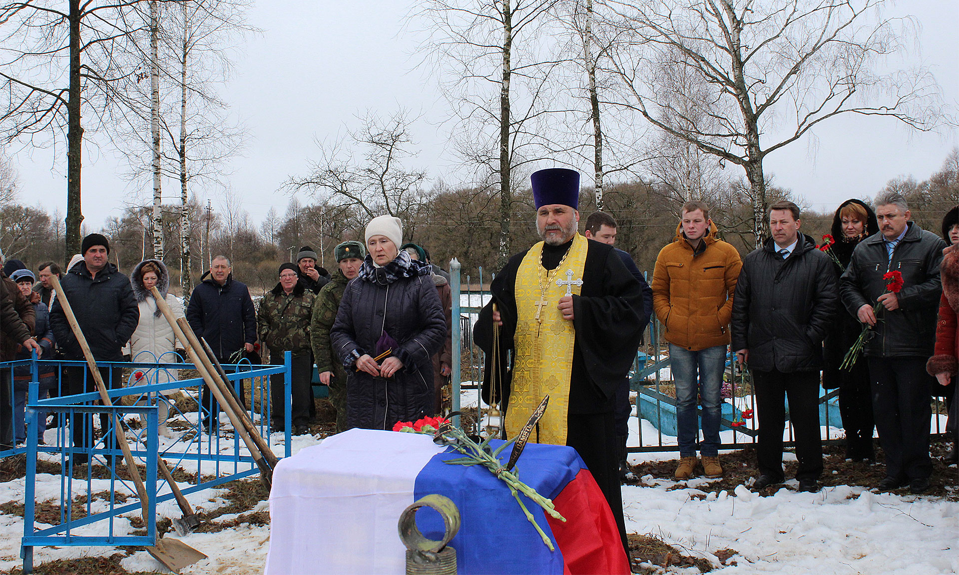 Уже на кладбище в деревне Новоселье в память о погибшем настоятель храма в честь Рождества Пресвятой Богородицы села Гордеевка протоиерей Владимир отслужил панихиду. Отец Владимир напомнил о том, что нет выше подвига, чем «душу свою положить за други своя», как важно помнить свою историю и чтить память погибших воинов своих предков, отдавших жизни за Веру и Отечество.