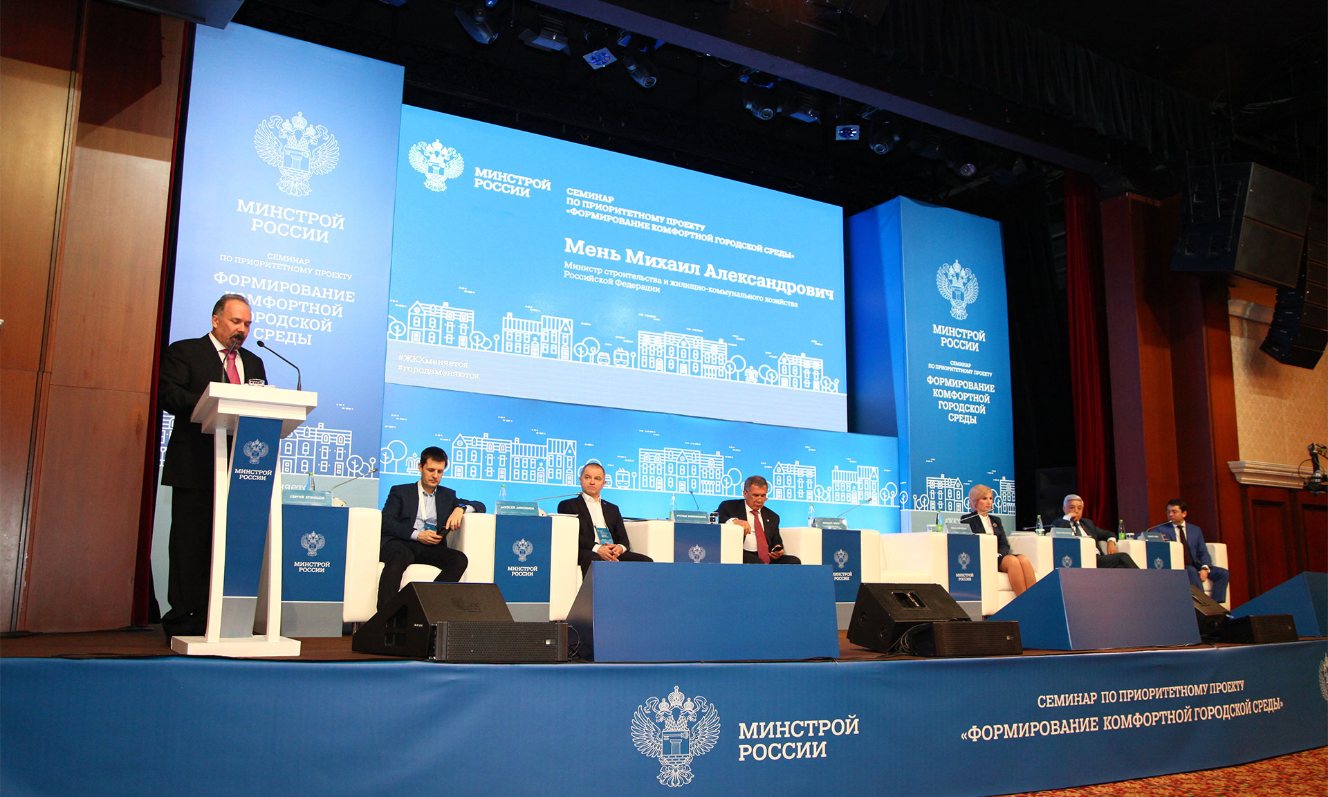 Михаил Мень напомнил, что проект по формированию комфортной городской среды был назван приоритетным Президентом страны. По словам министра — цель серьезная и принципиально значимая. «Выполнение этой задачи мы начнем с наведения элементарного порядка в наших городах и селах — речь идет обо всех муниципалитетах нашей страны с населением более 1000 человек. Таких в нашей стране сегодня 12 145», — отметил он.