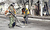МУП «Благоустройство» к весенним ремонтным работам на городских улицах приобретено 10 тонн асфальтово-бетонной смеси. Сегодня бригада ремонтных рабочих начала ямочный ремонт улицы Красноармейской. Ямки предварительно очищаются от щебня и песка, а затем засыпаются асфальтом, разогреваются паяльными лампами и укатываются виброплитой. Как говорят дорожники, таких «заплат» хватает на несколько сезонов. В целом на содержание и ремонт улично-дорожной сети в 2017 году МУП «Благоустройство» будет выделено 4,8 млн. рублей.