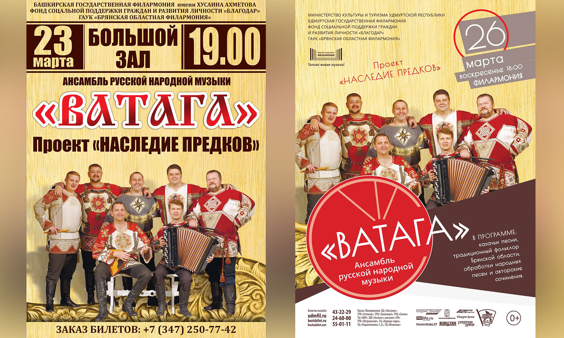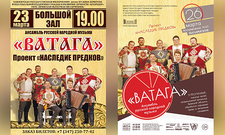 24 марта 2017 года в 19.00 в продолжение проекта «Наследии предков» и гастрольного тура ансамбля народной музыки «Ватага» концерт состоится на сцене Нефтекамской государственной филармонии.