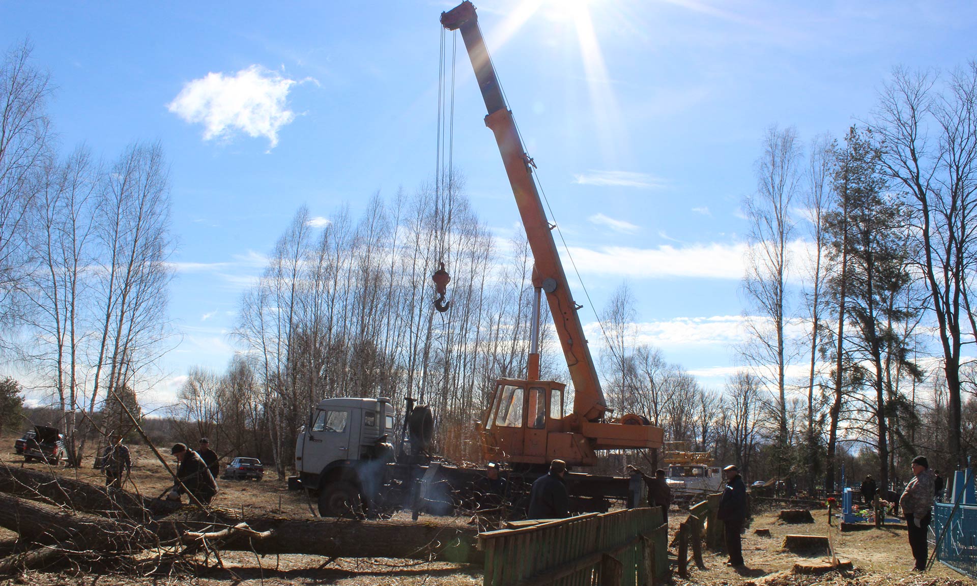 В рамках акции «Всем миром» на территории Глодневского кладбища проходят масштабные работы по благоустройству. Группа мужчин откликнулась на призыв главы сельской администрации Елены Бушуевой провести трудоемкие работы по спиливанию старых деревьев по всему периметру погоста, вырубке кустарника. Было снесено деревянное сгнившее ограждение. Со стороны центрального входа будет установлен современный забор, заказ на который уже выполнен. Личную технику для общественных работ предоставили индивидуальные предприниматели Александр Тарасов, Виктор Чижиков. Два дня на спиливании опасных деревьев был задействован кран, наличие которого обеспечил руководитель ООО «Сельхозник» Василий Клюенков. Работы здесь ведутся не один день, и выполненный их объем огромен. Тут же производится обрезка и утилизация сучьев и веток. Бригада мужчин трудилась сплоченно, дружно, активно, ответственно.