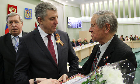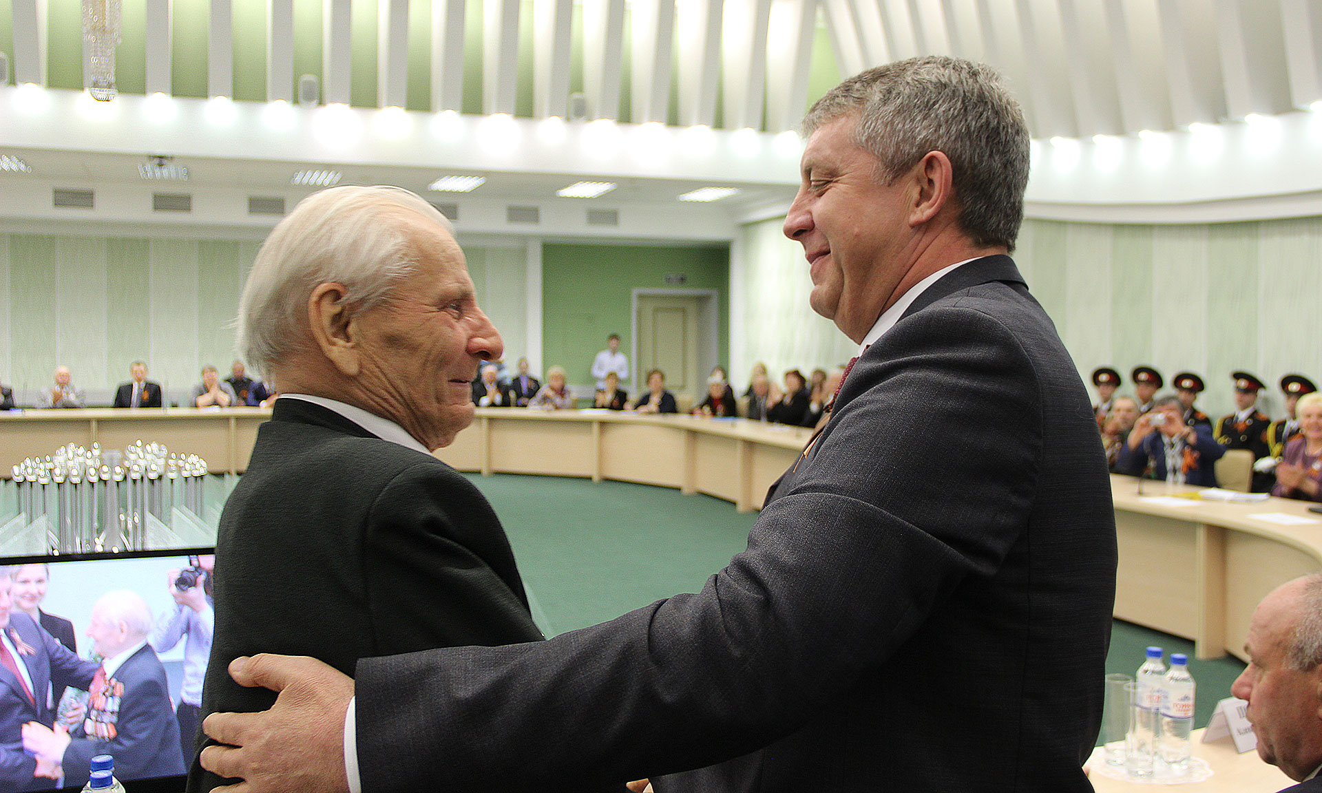 — Сегодня в зале сидят живые легенды, люди, благодаря ратному, трудовому подвигу которых была достигнута победа над врагом в Великой Отечественной войне, запущен первый искусственный спутник земли, Юрий Гагарин совершил первый космический полет! Это признанные достижения общемирового масштаба! Мы склоняем головы перед вашим героизмом. Уверен, что все, что вы сделали, делаете сегодня, останется в надежных руках. Россия — огромная страна! Благодаря общности и взаимопониманию, патриотизму народов, ее населяющих, политике нашего Президента, она сегодня поступательно развивается. Добра вам, счастья, с наступающим великим праздником — Днем Победы!