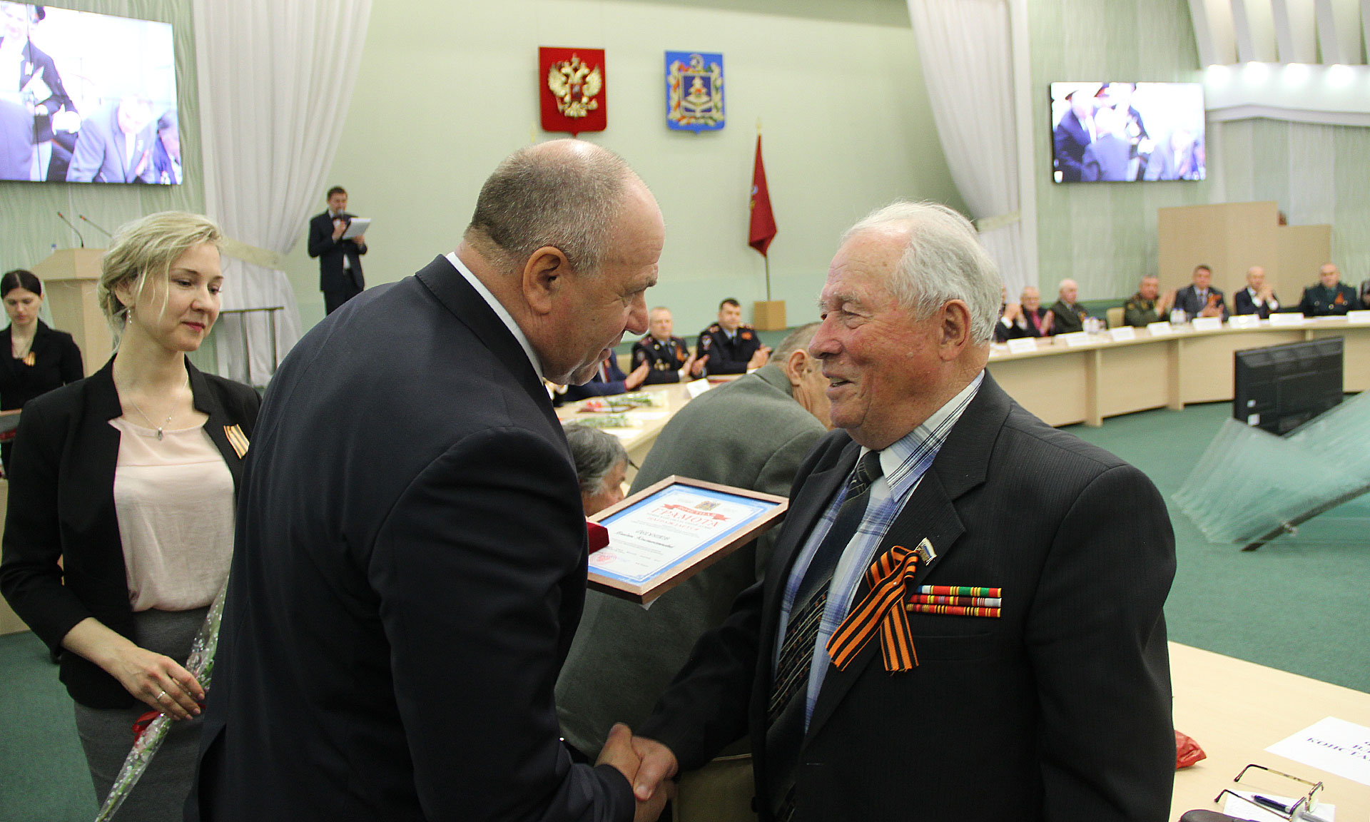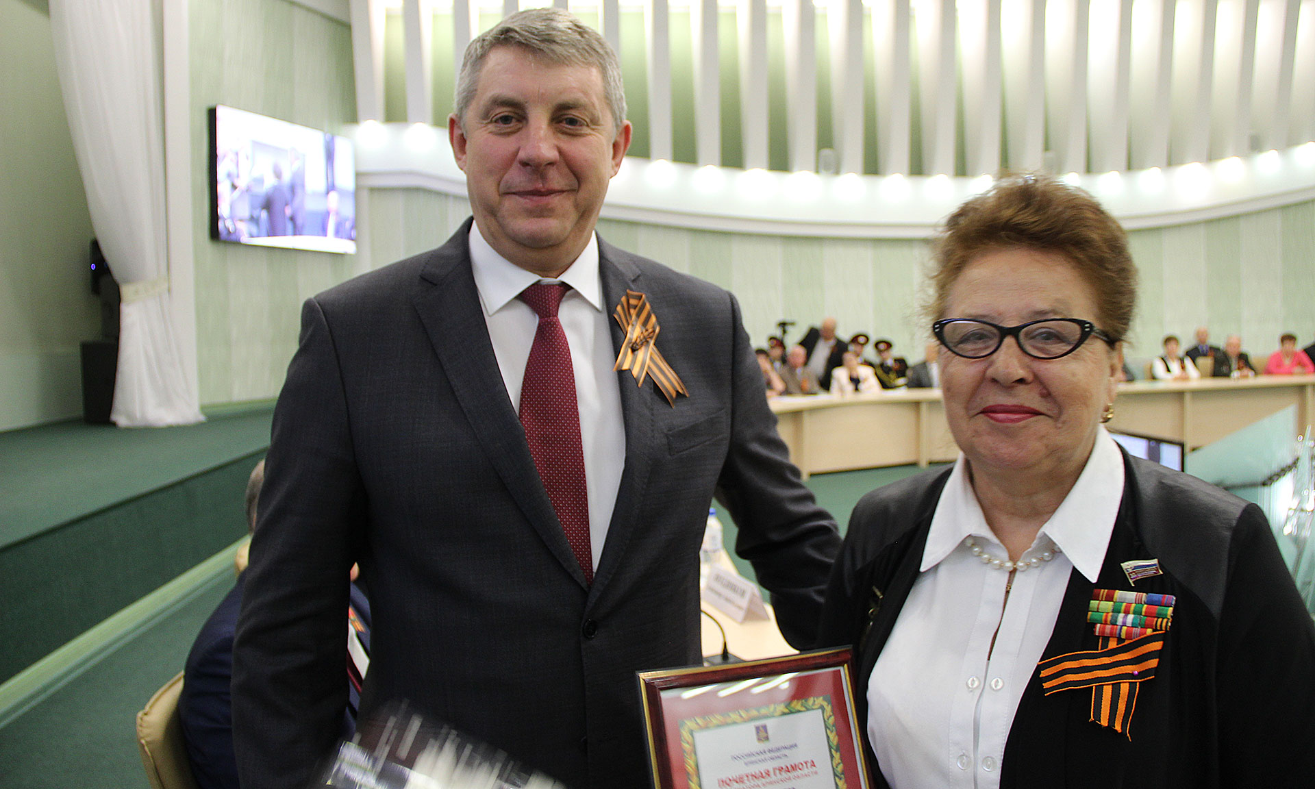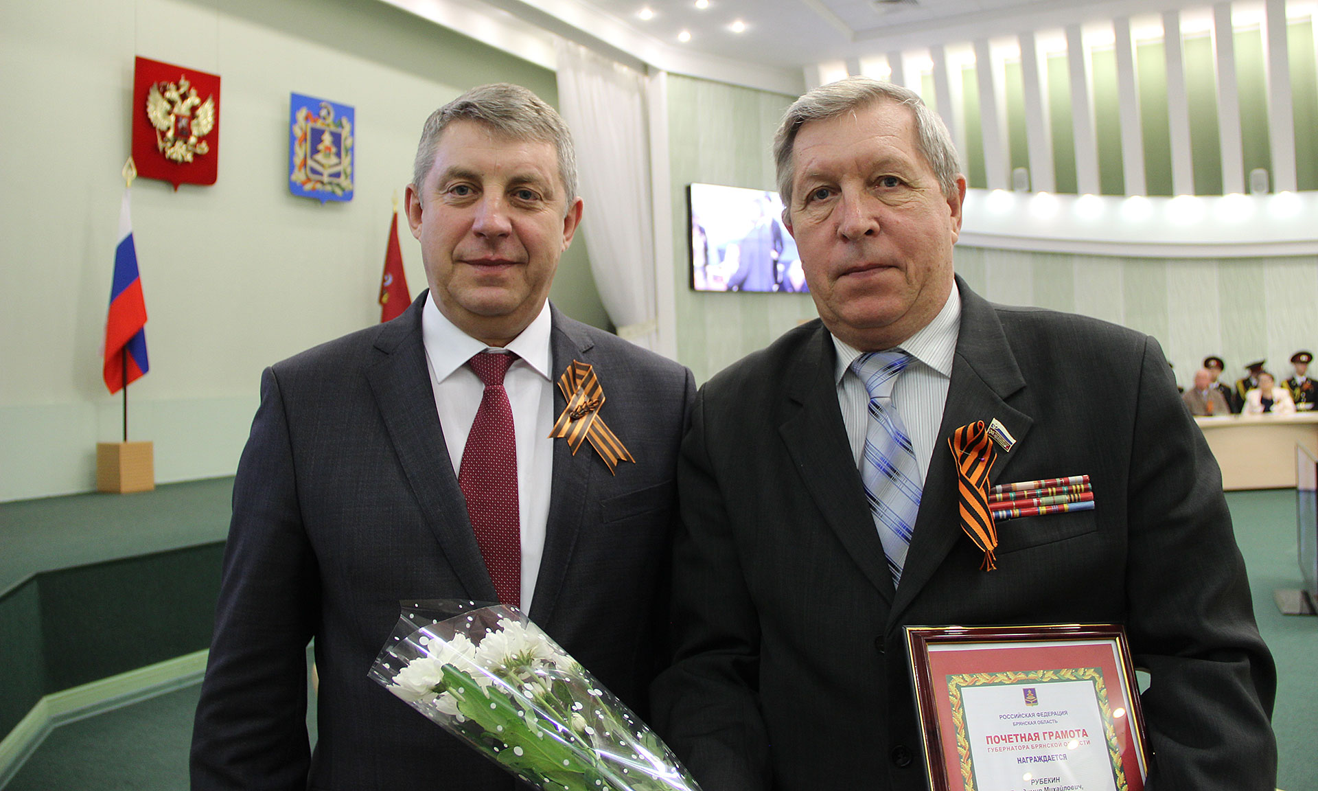Почетными грамотами Брянской областной Думы награждены: Юрий Михайлович Потемкин — заместитель председателя Брянской областной общественной организации ветеранов (пенсионеров) войны, труда, Вооруженных Сил и правоохранительных органов, Анатолий Леонович Евсютин — председатель Суземского районного совета ветеранов; Вячеслав Александрович Колосов — председатель Сельцовского городского совета ветеранов, Владлен Константинович Федотов — председатель Трубчевского районного совета ветеранов, Георгий Александрович Бейгул — председатель Новозыбковского городского совета ветеранов, Николай Сергеевич Волохо — председатель Фокинского городского совета ветеранов.