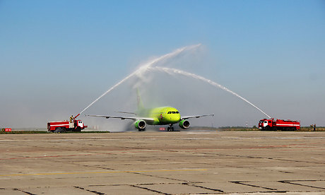 Airbus A319 приземлился в брянском аэропорту согласно расписанию в 9.25. Красивое и современное воздушное судно привлекло к себе внимание журналистов и почетных гостей. По сложившейся мировой традиции авиации первый борт встречали через водную арку, образованную двумя пожарными машинами. У входа в аэровокзал пассажиров и встречающих радовали своим творчеством брянские коллективы. Здесь же и провели торжественную церемонию открытия рейсов Брянск-Санкт-Петербург.