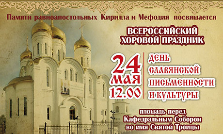 24 мая 2017 года в 12.00 в Брянске и во всех муниципальных образованиях Брянской области состоятся праздничные концерты хоровых коллективов, посвященные Дню славянской письменности и культуры.