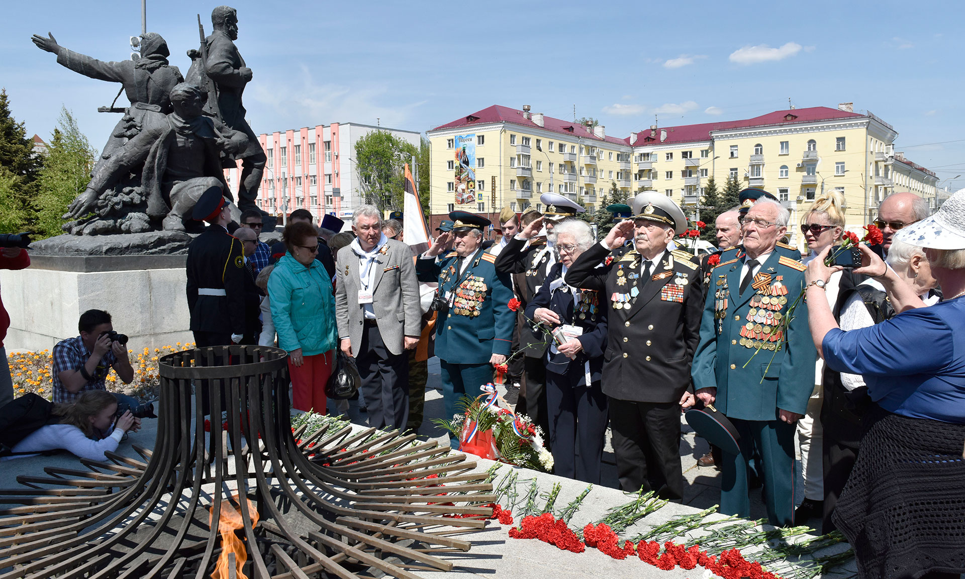 В знак памяти и благодарности воинам и партизанам, победителям в Великой Отечественной войне 1941—1945 гг. корзину цветов и цветы к Вечному огню памяти народной возложили Губернатор Брянской области Александр Богомаз, исполняющий обязанности председателя областной Думы Анатолий Бугаев, митрополит Брянский и Севский Александр, председатель Брянского областного Совета ветеранов войны, труда, Вооруженных Сил и правоохранительных органов Сергей Алексеевич Панков, Герой Советского Союза Иван Андреевич Кашин, Герой России Александр Постоялко, председатель Брянской областной общественной организации ветеранов войны и военной службы Василий Петрович Бударин, председатель комитета ветеранов войны и военной службы Калининградской области Юрий Львович Богомолов, житель блокадного Ленинграда, ребенок войны, участник патриотической акции Калининградской области «Поезд Памяти» Владимир Васильевич Щукин, начальник УМВД России по Брянской области Валентин Кузьмин, секретарь Брянского регионального отделения партии, член генерального совета партии «Единая Россия» Юрий Гапеенко, исполняющий обязанности руководителя следственного управления Следственного комитета Российской Федерации по Брянской области Дмитрий Буравцов, заместитель начальника по правоохранительной деятельности Брянской таможни О Ген Ри, временно исполняющий обязанности начальника управления ФСИН России по Брянской области Василий Шуранов, первый заместитель начальника Главного управления МЧС России по Брянской области Алексей Анисенков, начальник Управления Федеральной службы войск национальной гвардии Российской Федерации по Брянской области Константин Обушев, вице-губернатор Александр Резунов, заместители Губернатора Брянской области, военный комиссар Брянской области Андрей Соломенцев, глава Брянской городской администрации Александр Макаров, глава города Брянска Александр Хлиманков, генерал-майор в отставке, бывший командир первой Московско-Минской дивизии Николай Иванович Чигирин, генерал-майор в отставке, бывший военный комиссар Калининградской области Виктор Владимирович Гребенников, генерал-майор в отставке, член совета ветеранов погранвойск Калининградской области Александр Васильевич Меньшенин, контр-адмирал в отставке, председатель совета ветеранов надводных кораблей Балтийского флота Юрий Александрович Крысов, руководитель координационного центра поискового движения ДОСААФ России Максим Ретинский, председатель регионального отделения ДОСААФ Виктор Андреев, председатель Совета Брянского регионального общественного движения военно-патриотических и поисковых объединений «Отечество» Александр Соболев, начальник отдела гражданско-патриотического воспитания и содействия занятости молодежи Агентства по делам молодежи Калининградской области, руководитель «Поезда Памяти» Евгения Дёмина.