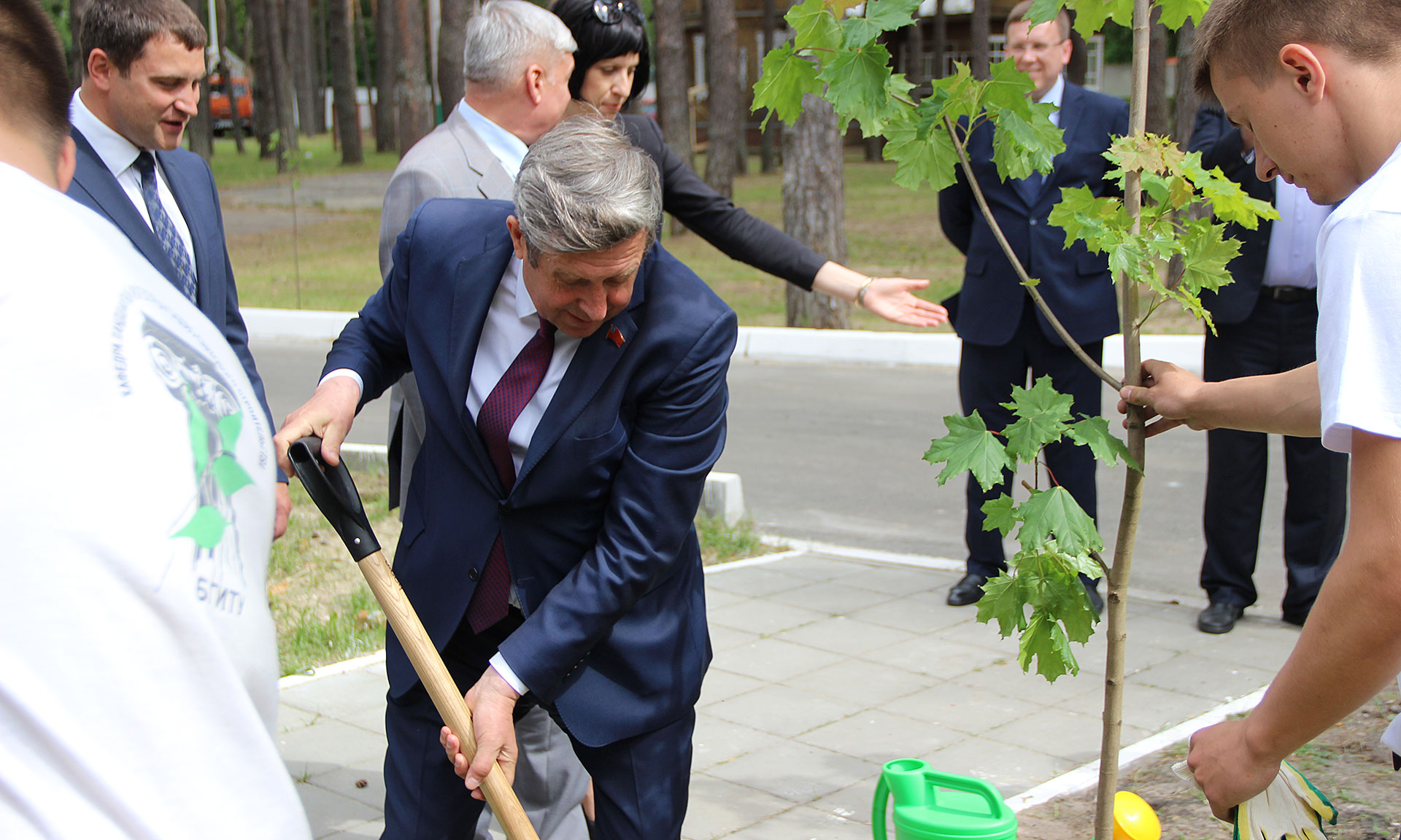 Приятным сюрпризом для заместителя Министра Ирины Кузнецовой стала возможность внести свою лепту в Год экологии, который сейчас проходит в нашей стране. На одной из аллей оздоровительного лагеря она вместе с Губернатором Александром Богомазом, председателем Брянской областной Думы Владимиром Попковым, главным федеральным инспектором по Брянской области Леонидом Соломатиным, депутатом Государственной Думы ФС РФ Валентиной Мироновой, заместителем Губернатора Брянской области Николаем Щегловым, заместителем начальника Московской железной дороги Мухарбеком Озиевым посадила саженцы деревьев.