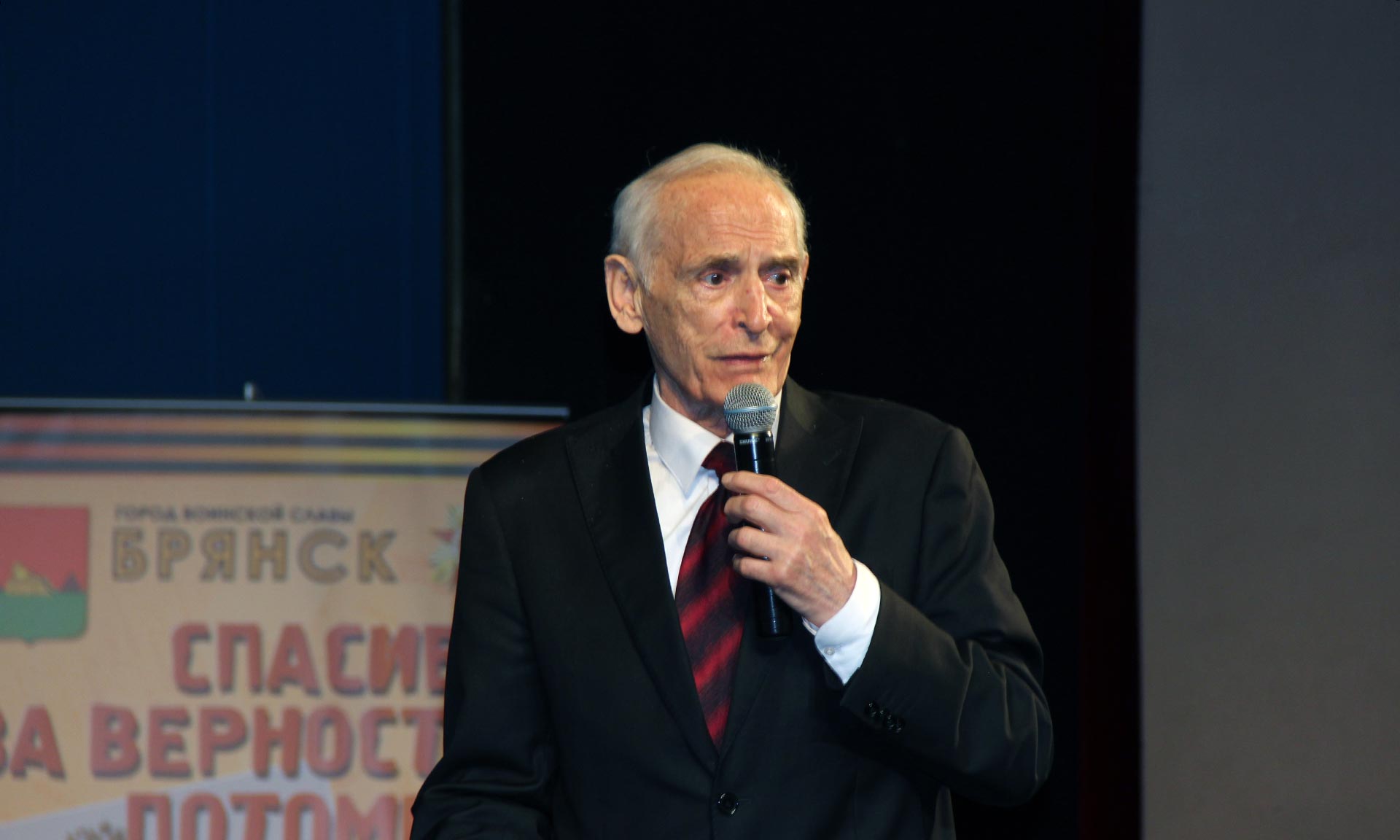 — Всякий раз, когда я приезжал в Брянск, я всегда шел в лес, потому что «Шумел сурово Брянский лес…». Это у меня осталось с детства, это для меня осталось навсегда, так же, как Сталинград, Ленинград, как и другие великие города, отстоявшие независимость нашей страны, — так начал свое выступление Василий Лановой.