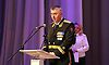 От имени полномочного представителя Президента РФ в ЦФО Александра Беглова участников торжественного мероприятия поздравил главный федеральный инспектор в Брянской области, пограничник, участник боевых действий в Афганистане, генерал-майор запаса Леонид Соломатин.