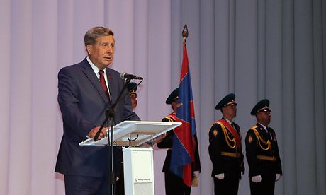 — Друзья, дорогие боевые товарищи. С волнением хочу обратиться к вам. Сегодня мы чествуем сотрудников и ветеранов пограничной службы, говорим слова благодарности друг другу. Пограничники — это особое сообщество людей. Для нас граница это не просто линия на карте — это наша жизнь, это наша судьба. И ее надежная охрана это дело чести каждого, кто свято чти нерушимые законы нашего товарищества, нашего пограничного братства.