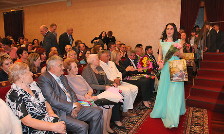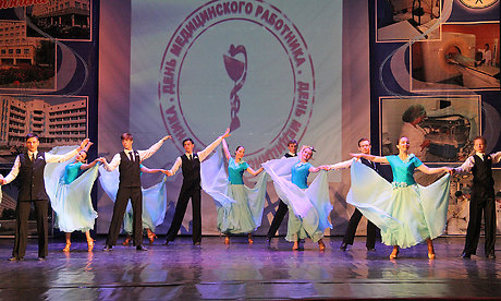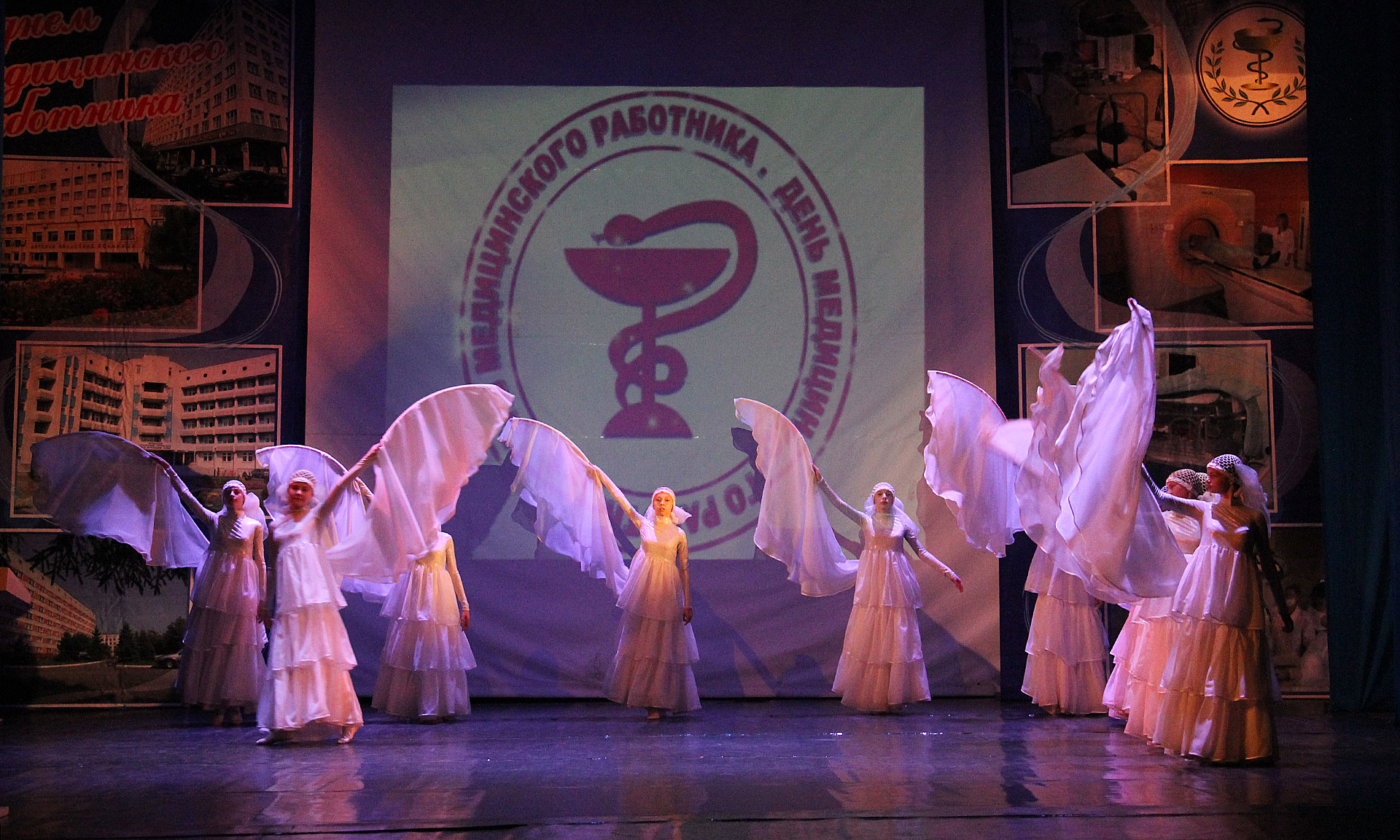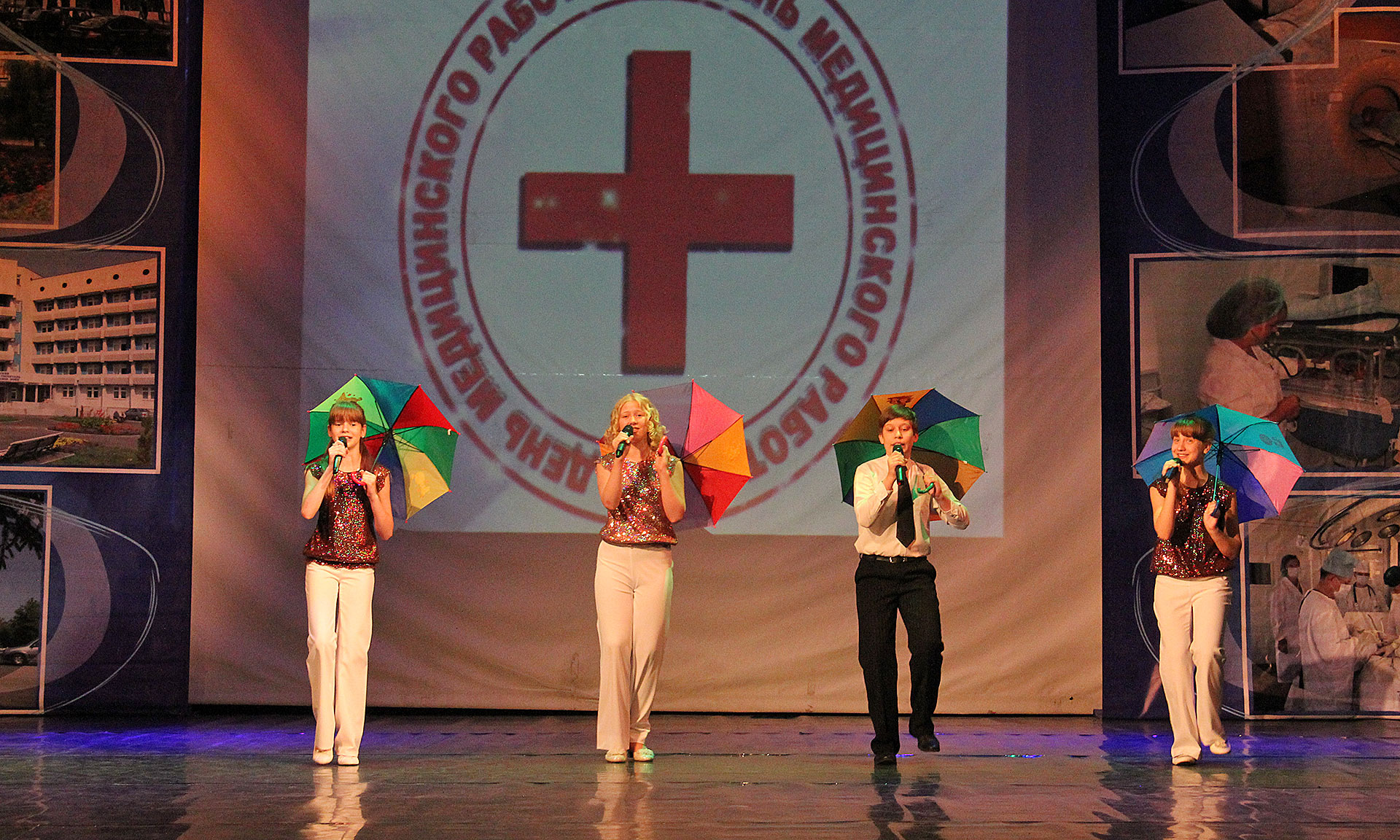 Студенты медицинского техникума вручили ветеранам здравоохранения, присутствующим в зрительном зале, цветы. Торжественное собрание, посвященное Дню медицинского работника, продолжилось праздничным концертом.