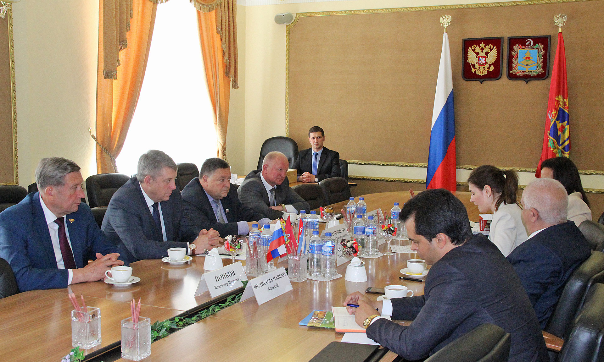 В Правительстве Брянской области состоялась рабочая встреча Губернатора Брянской области Александра Богомаза с членами делегации. Во встрече также приняли участие председатель Брянской областной Думы Владимир Попков, член Совета Федерации Сергей Калашников, директор департамента сельского хозяйства Борис Грибанов.