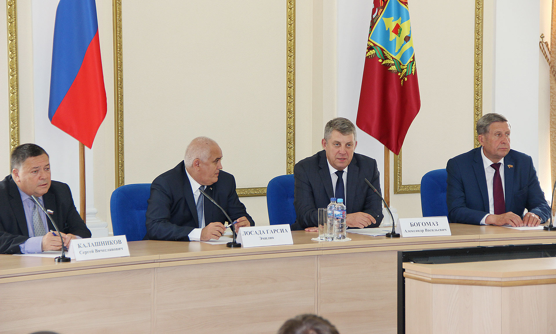 Чрезвычайный и полномочный посол Республики Куба в Российской Федерации Эмилио Лосада Гарсиа рассказал Губернатору Брянской области о реализации крупных совместных проектов Кубы и России в области строительства энергоблоков, развития железнодорожного транспорта и многих других.