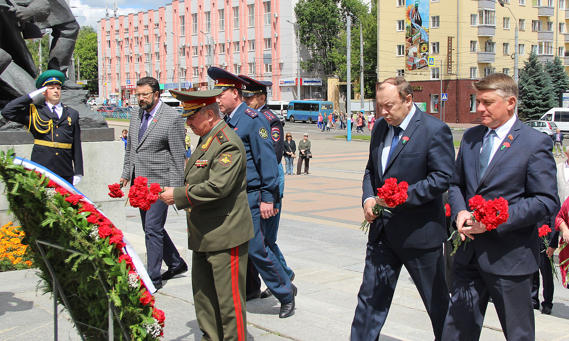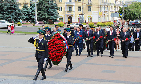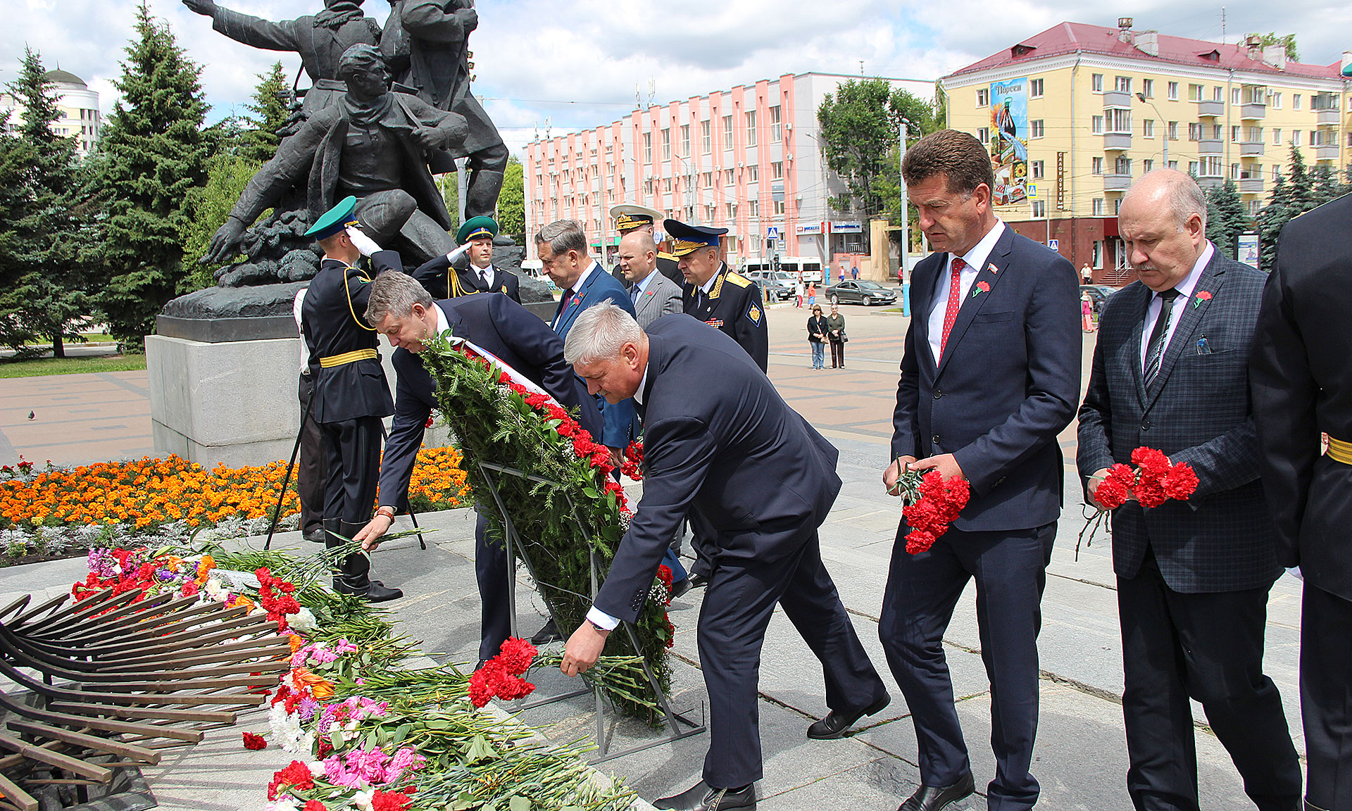 22 июня почетная делегация во главе с Губернатором Брянской области Александром Богомазом приняла участие в церемонии возложении цветов к Вечному огню на площади Партизан.