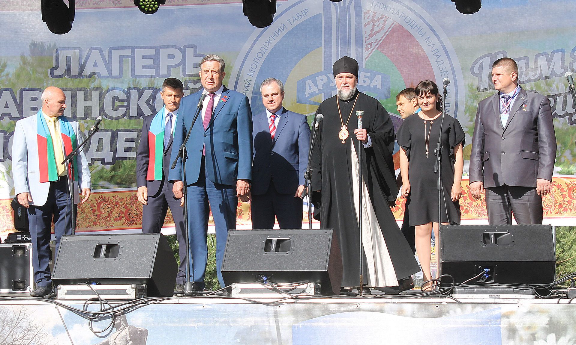 В торжественной церемонии открытия Международного лагеря славянской молодежи «Дружба-2017» приняли участие председатель Брянской областной Думы Владимир Попков, Его Высокопреосвященство епископ Клинцовский и Трубчевский Владимир, заместитель председателя Гомельского облисполкома Владимир Привалов, заместитель начальника отдела Главного управления идеологической работы, культуры и по делам молодежи Могилевского облисполкома Виктор Бубенцов, Герой России Александр Постоялко, глава города Клинцы Олег Шкуратов, глава администрации Клинцовского района Виктор Савченко, депутаты Брянской областной Думы Алексей Белаш и Татьяна Харченко, начальник управления молодежной политики и общественных проектов департамента внутренней политики Брянской области Мария Раевская и другие.