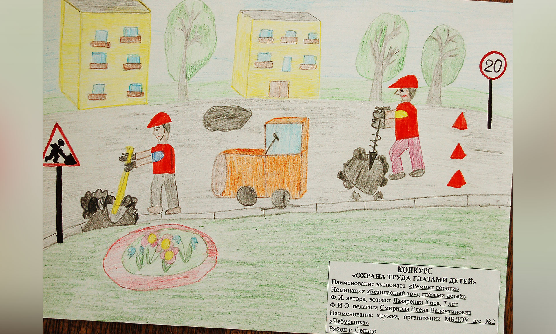 Лазоренко Кира, 7 лет, воспитанница МДОУ детский сад № 2 общеразвивающего вида «Чебурашка» г. Сельцо, творческая работа «Важен труд дорожного строителя», воспитатель Смирнова Елена Валентиновна
