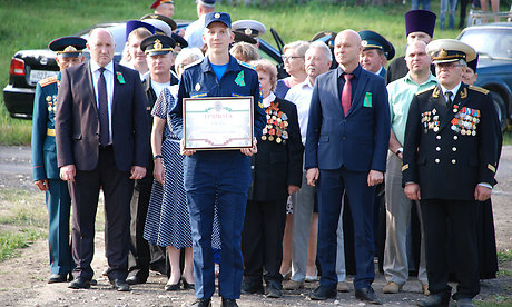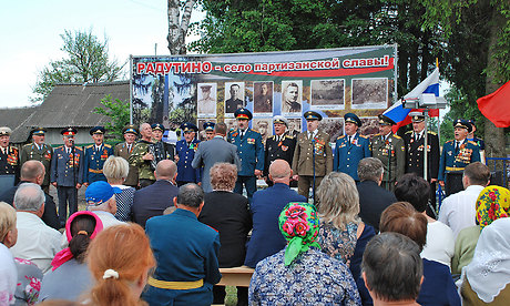 В торжественных мероприятиях, прошедших в Радутино, приняли участие заместитель Губернатора Брянской области Александр Коробко, депутат Брянской областной Думы Василий Евсеев, временно исполняющая обязанности главы администрации Трубчевского района Светлана Тубол, глава Усохского сельского поселения Светлана Самошкина, заместитель главного редактора журнала «Воин России», член правления «Брянское землячество в Москве», капитан 1-го ранга Василий Дандыкин, военный комиссар по Трубчевскому району Брянской области, подполковник Сергей Тутенко, официальная делегация Трубчевского района, офицеры запаса ВС РФ, ветераны, местные жители, гости из Трубчевска и соседних деревень. Почетное право доставить грамоту в Радутино было предоставлено курсанту Воронежской Военно-воздушной академии Артему Исаченко.
