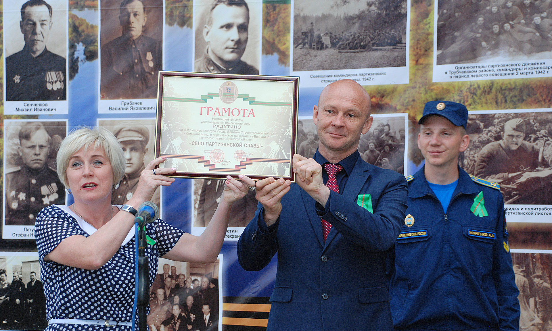 В День партизан и подпольщиков, 29 июня 2017 года, на Площади партизан в Брянске состоялась церемония передачи грамоты о присвоении селу Радутино Трубчевского района звания «Село партизанской славы». 30 июня в селе Радутино состоялись торжественные мероприятия в честь присвоения селу почетного звания.