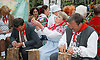 Затем собравшихся гостей праздника приветствовал народный хор офицеров запаса ВС РФ под руководством заслуженного работника культуры Виктора Разинкина. В исполнении хора прозвучали песни «Мы — армия народа», «Березовые сны» и другие.