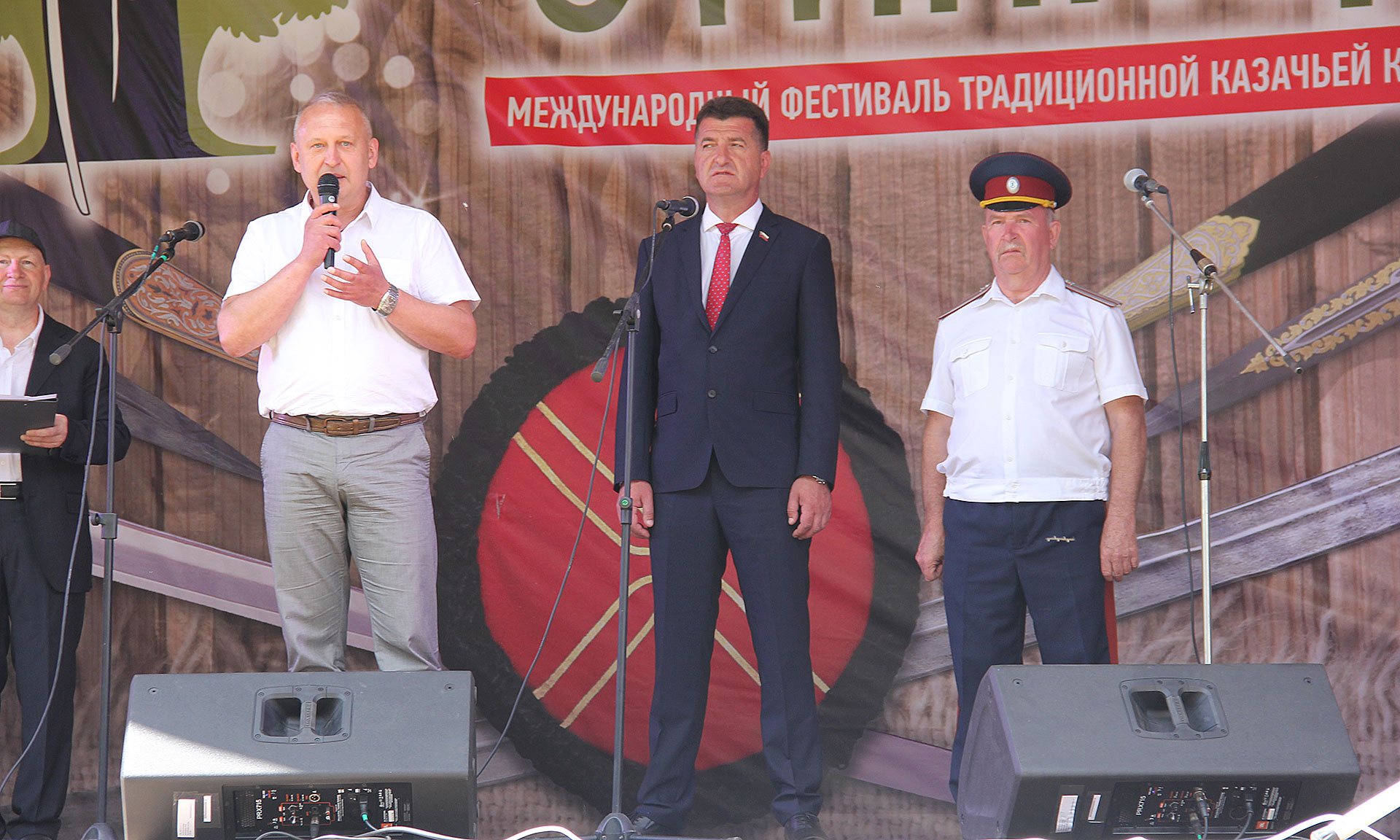 -Позвольте мне от имени Губернатора Брянской области Александра Васильевича Богомаза поздравить вас с открытием фестиваля, с этим светлым, солнечным днем! С праздником традиционной казачьей культуры! Именно тем, что вы сохраняете эти традиции, вы вносите огромный вклад в развитие патриотического воспитания молодежи. Казацкое сословие играет уникальную роль в возрождении патриотизма в России. Это неоднократно подчеркивал Президент России Владимир Владимирович Путин. Есть такая пословица «Где казак, там и слава», поэтому слава казакам, слава тем, кто сохраняет эти традиции и слава нашему государству. С праздником!
