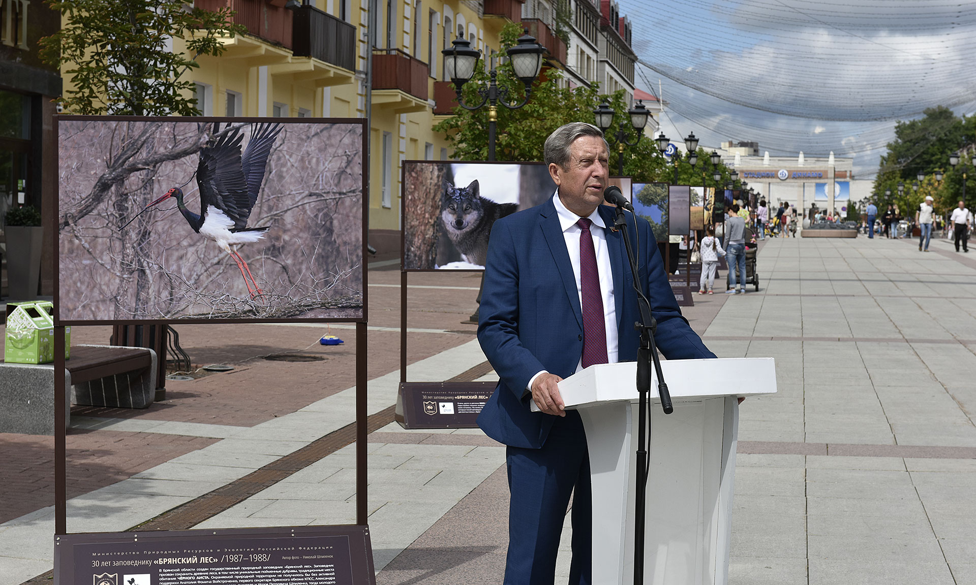 — Фотовыставка, посвященная 30-летию заповедника «Брянский лес», имеет для всех нас очень важное значение. Этот юбилей мы отмечаем в Год экологии, который был объявлен Президентом России Владимиром Владимировичем Путиным. Символично и то, что ровно сто лет назад в России был создан первый государственный заповедник «Баргузинский» на Байкале. За это время было создано и сегодня функционирует 51 национальный парк и 103 заповедника, один из которых расположен на нашей родной брянской земле.