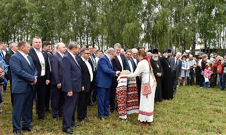 Представители официальной делегации прибыли на площадку проведения выставки-демонстрации, где их встретили у главных ворот по старинной русской традиции — с вручением хлеба-соли. Гости по пути следования к главной сцене познакомились с выставками агрохолдинга «Мираторг», Выгоничского муниципального района, предприятий перерабатывающей промышленности области, фермерских хозяйств «Фермерский рынок», ЗАО СП «Брянсксельмаш», КЗ «Ростсельмаш».