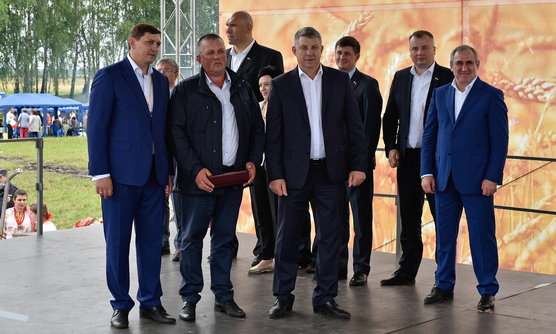 «День брянского поля» — широкомасштабное мероприятие, в котором традиционно принимают участие гости самого высокого уровня. По приглашению Губернатора Александра Богомаза в нем приняли участие Секретарь Генерального совета Партии «Единая Россия», Заместитель Председателя Государственной Думы Федерального Собрания Российской Федерации Сергей Неверов, заместитель полномочного представителя президента РФ в ЦФО Мурат Зязиков, Губернатор Новосибирской области Владимир Городецкий, Председатель Белорусского государственного концерна пищевой промышленности «Белгоспищепром» Александр Забелло, первый заместитель председателя комитета Государственной Думы по экологии и охране окружающей среды Николай Валуев, депутаты Государственной Думы ФС РФ Евгений Ревенко, Виктор Дзюба, Вадим Деньгин, Валентин Суббот, Валентина Миронова, директор Департамента научно-технологической политики и образования Министерства сельского хозяйства Российской Федерации Виталий Волощенко, заместитель председателя Витебского областного исполнительного комитета Виктор Аскерко, руководитель отделения Посольства Республики Беларусь в Смоленске Чеслав Шульга, заместитель директора Департамента растениеводства, механизации, химизации и защиты растений министерства сельского хозяйства Российской Федерации Евгений Купреев, заместитель директора административного департамента Министерства сельского хозяйства Российской Федерации Владимир Кондрашкин, председатель профсоюза работников агропромышленного комплекса Российской Федерации Наталья Агапова, председатель правления РОО «Брянское Землячество» Татьяна Наумова.