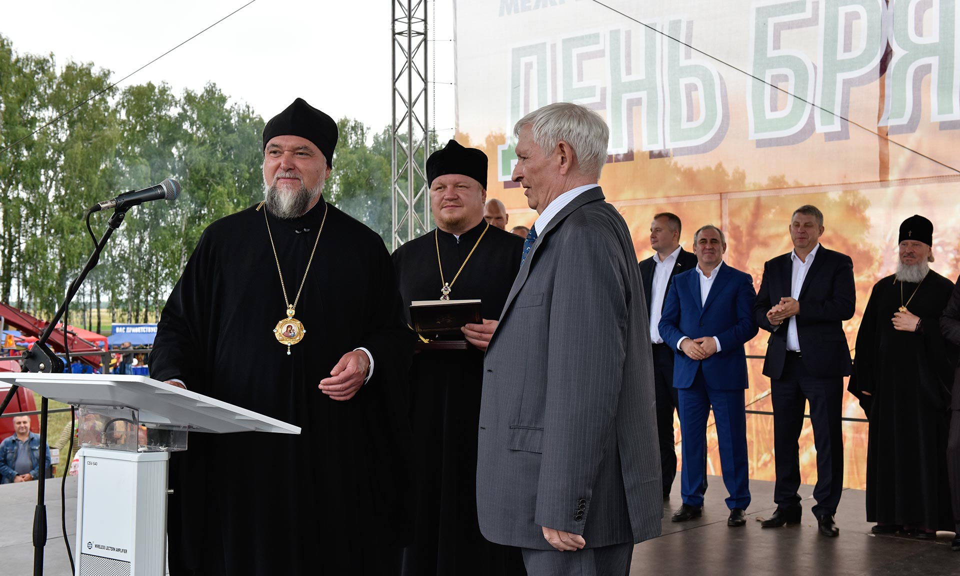 Его Высокопреосвященство Митрополит Брянский и Севский Александр сердечно приветствовал всех, причастных к труду на благословенной плодоносной брянской земле: «С благодарностью воспринимаем ваше стремление возродить и расширить сельское традиционное производство в России. Труд на земле благословлен Богом нашим, и всякий добросовестный труженик приемлет множественные плоды своих забот для собственной пользы и пользы своих ближних. Священное Писание призывает всех и каждого: „Не отвращайся от трудной работы и от земледелия, которое учреждено от Вышнего“. Мы призываем всех и каждого к мудрому хозяйствованию на брянском поле, беречь его для будущих поколений!».