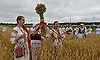 Секретарю Генерального совета Партии «Единая Россия», Заместителю Председателя Государственной Думы ФС РФ Сергею Неверову и Губернатору Брянской области Александру Богомазу торжественно вручили традиционный первый сноп урожая 2017 года.
