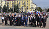 Цветы к памятнику возложили председатель Брянской областной Думы Владимир Попков, главный федеральный инспектор по Брянской области Афанасий Киселев, Его Высокопреосвященство митрополит Брянский и Севский Александр, глава города Брянска Александр Хлиманков, глава Брянской городской администрации Александр Макаров, представитель Брянского областного Совета ветеранов войны, труда, Вооруженных Сил и правоохранительных органов, подполковник медицинской службы Александр Мазилов, Герой Советского Союза Иван Кашин, Герой России Александр Постоялко, председатель Брянской областной общественной организации ветеранов войны и военной службы Василий Бударин, вице-губернатор Брянской области Александр Резунов, заместители Губернатора, председатель Брянского областного суда Евгений Быков, начальник Пограничного управления ФСБ России по Брянской области Сергей Станкевич, начальник Главного управления МЧС России по Брянской области Вадим Уваркин, военный комиссар Брянской области Андрей Соломенцев, начальник Управления Федеральной службы войск национальной гвардии Российской Федерации по Брянской области Константин Обушев, начальник Департамента ПАО «Газпром» Александр Беспалов, заместитель начальника Департамента — начальник Управления развития общественных связей ПАО «Газпром» Роман Сахартов, заместитель начальника Управления развития общественных связей Департамента ПАО «Газпром» Инна Данилова, заместитель генерального директора ООО «Газпром трансгаз Москва» по управлению персоналом и корпоративной защите Евгений Безбородкин, руководители территориальных федеральных органов государственной власти в Брянской области.