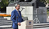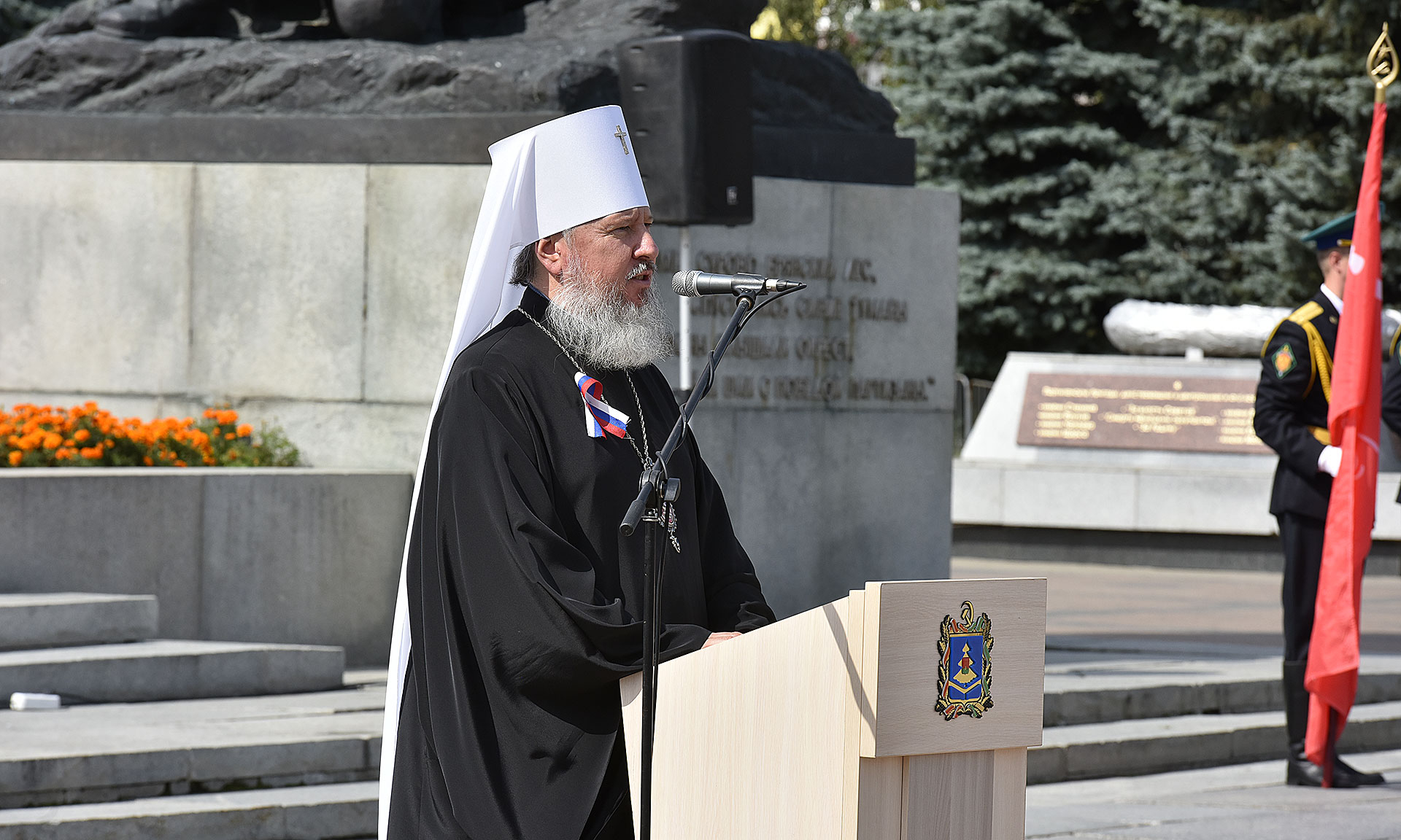 — Дорогие друзья! От всей души поздравляю вас с этим знаменательным праздником! В годы гражданской и Великой Отечественной войны главным заслуженным орденом был Орден Боевого Красного Знамени, а в мирные дни — Орден Трудового Красного Знамени. В годы Великой Отечественной войны существовал закон: если часть теряла свое знамя, эта часть подлежала немедленному расформированию. Но если из боя выходил один из раненых бойцов, грудь которого была обернута полковым знаменем, эта часть немедленно восстанавливалась лучшими бойцами нашей армии. Дорогие друзья! Меняются люди, события, но мы всегда ценим российский флаг, который развевается от сельского совета до Государственной Думы, и сейчас он реет на площади Партизан города Брянска, города боевой, трудовой, воинской и партизанской славы! С праздником, друзья!