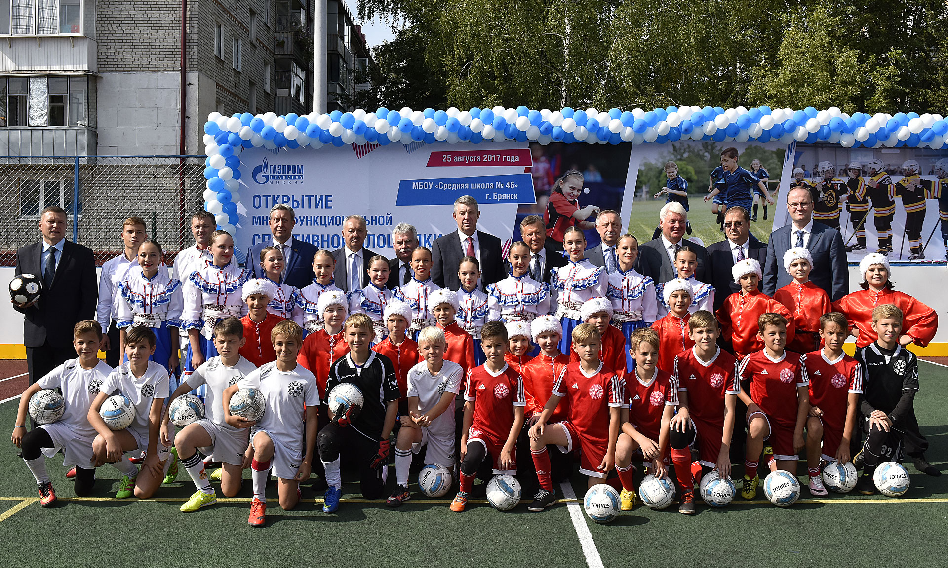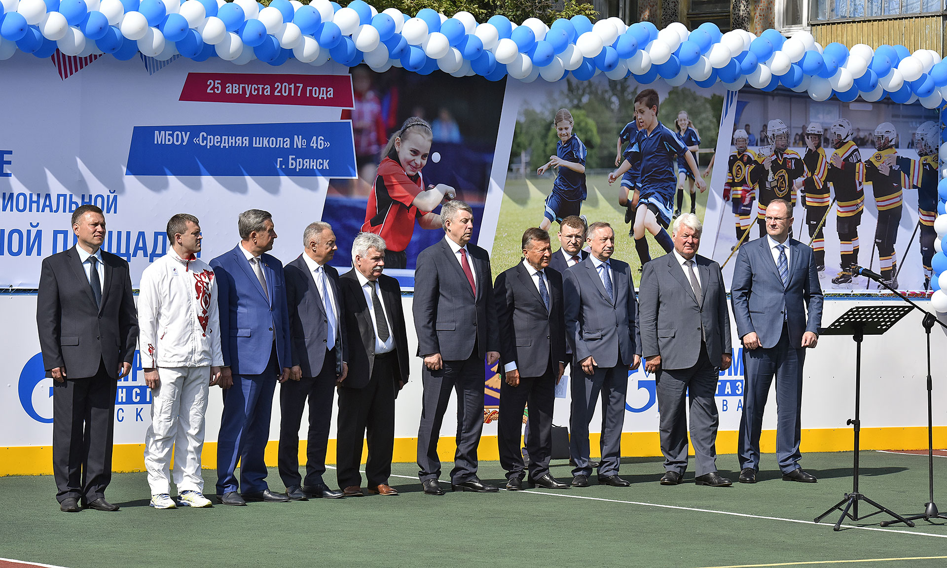 25 августа полномочный представитель Президента РФ в Центральном федеральном округе Александр Беглов и специальный представитель Президента РФ по взаимодействию с Форумом стран-экспортеров газа, Председатель Совета директоров ПАО «Газпром» Виктор Зубков, Губернатор Брянской области Александр Богомаз приняли участие в торжественном открытии многофункциональной спортивной площадки школы № 46 города Брянска.