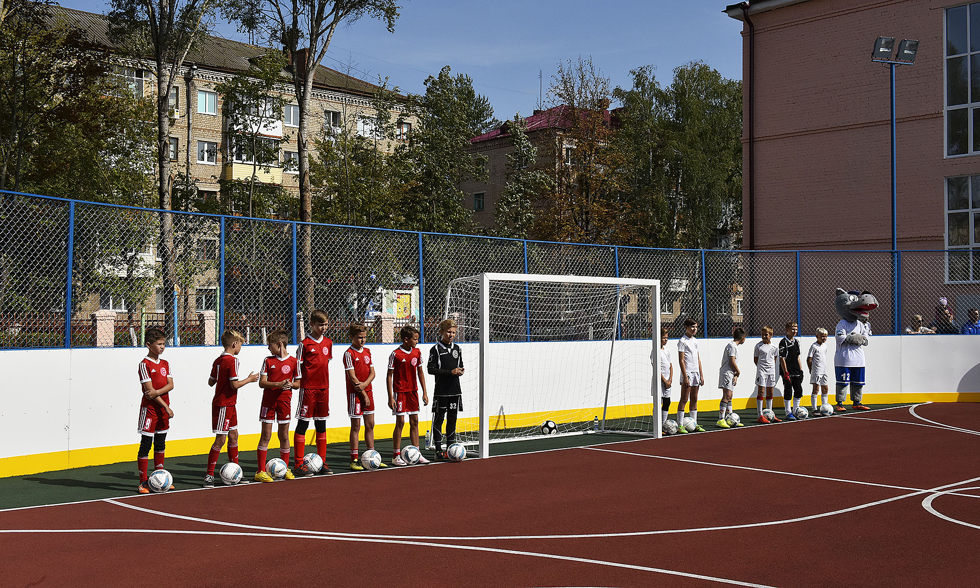 Почетные гости на память школе поставили подписи на памятном мяче. В подарок школе были переданы персональный компьютер, акустическая система, многофункциональное устройство. В завершение церемонии открытия спортплощадки была сделана фотография на память.