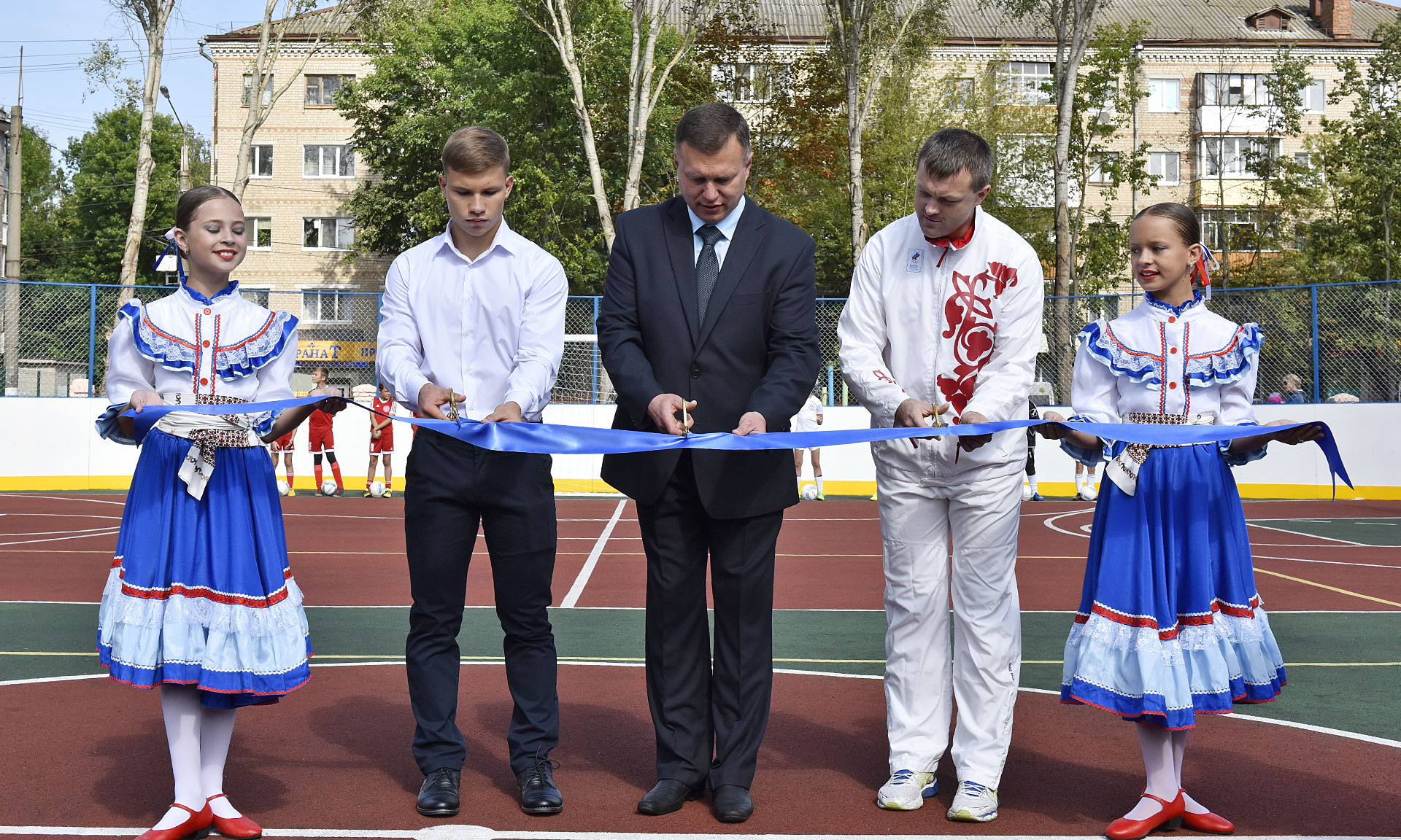 Почетное право перерезать памятную ленту было предоставлено директору средней общеобразовательной школы № 46 города Брянска Сергею Гридину, мастеру спорта международного класса по легкой атлетике, участник летних Олимпийских игр в Афинах в 2004 году Александру Кривченкову, молодому и перспективному спортсмену школы, учащемуся 11 «Б» класса Дмитрию Деменкову.