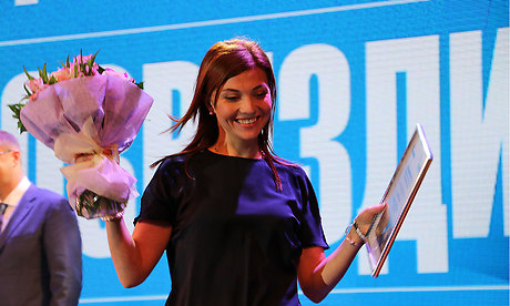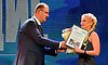 Виктор Зубков вручил специальный приз — сертификат на поездку в Санкт-Петербург на две персоны Дарье Переверзевой, представительнице Курского линейного производственного управления магистральных газопроводов.