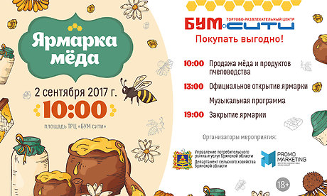 2 сентября с 10.00 на площади перед торгово-развлекательным центром «Бум-сити» в Бежицком районе состоится областная медовая ярмарка — 2017.