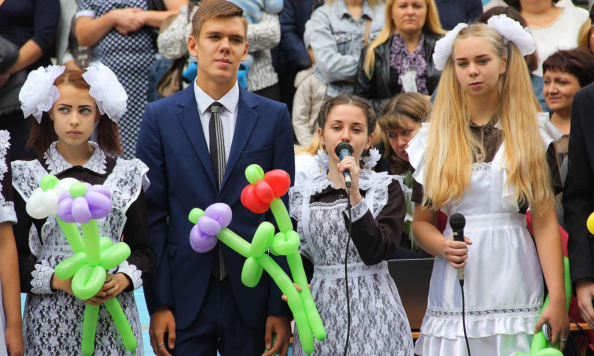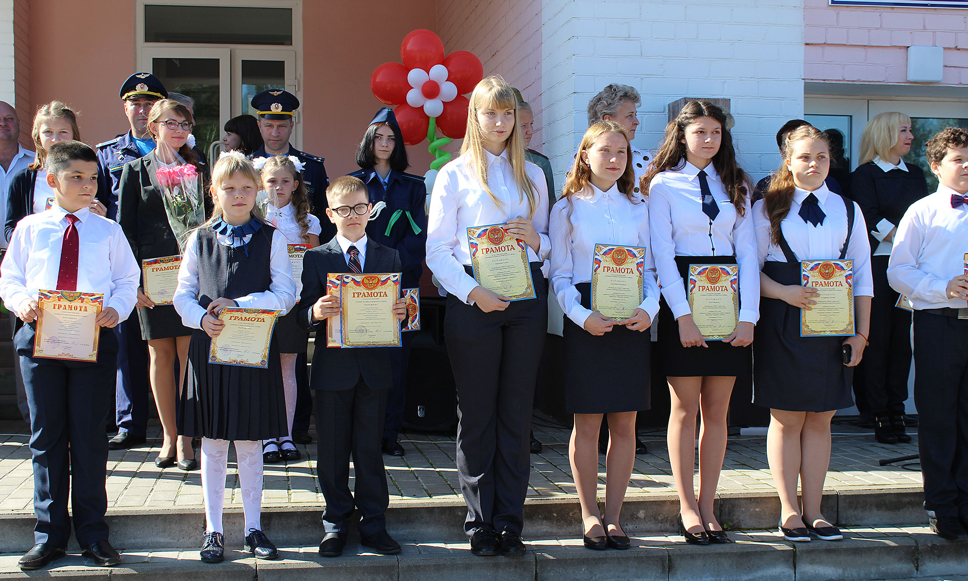 В заключение в небо были выпущены разноцветные шары, символизирующей флаг Российской Федерации, — в знак удачи в новом учебном году.