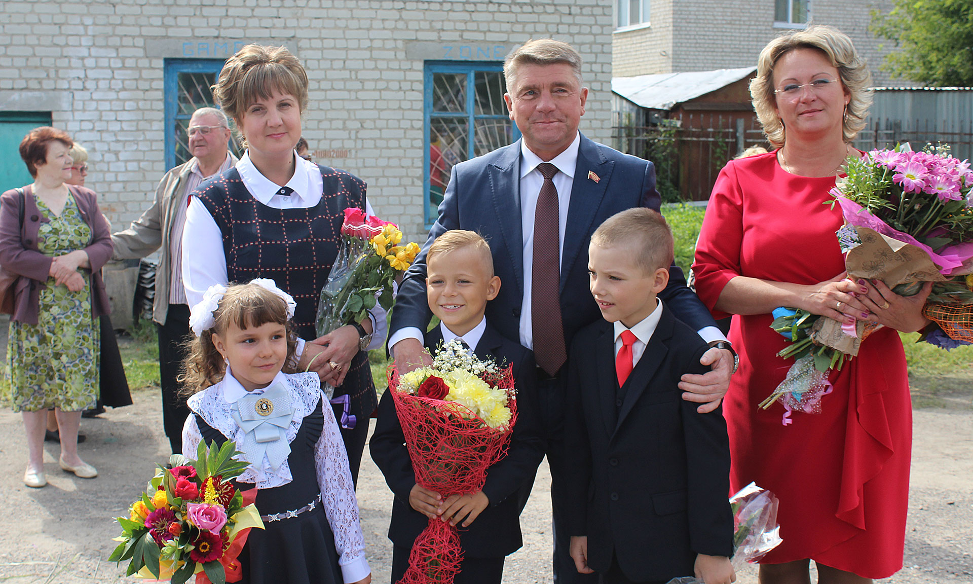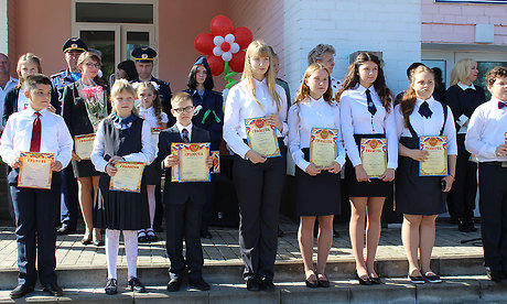 Учащихся Красносельской средней школы имени Героя Советского Союза М. Д. Цыкина поздравляли с началом нового учебного года генеральный директор АО «Брянскавтодор» Владимир Миллер и заместитель директора УКС Брянской области Роман Сенокос.