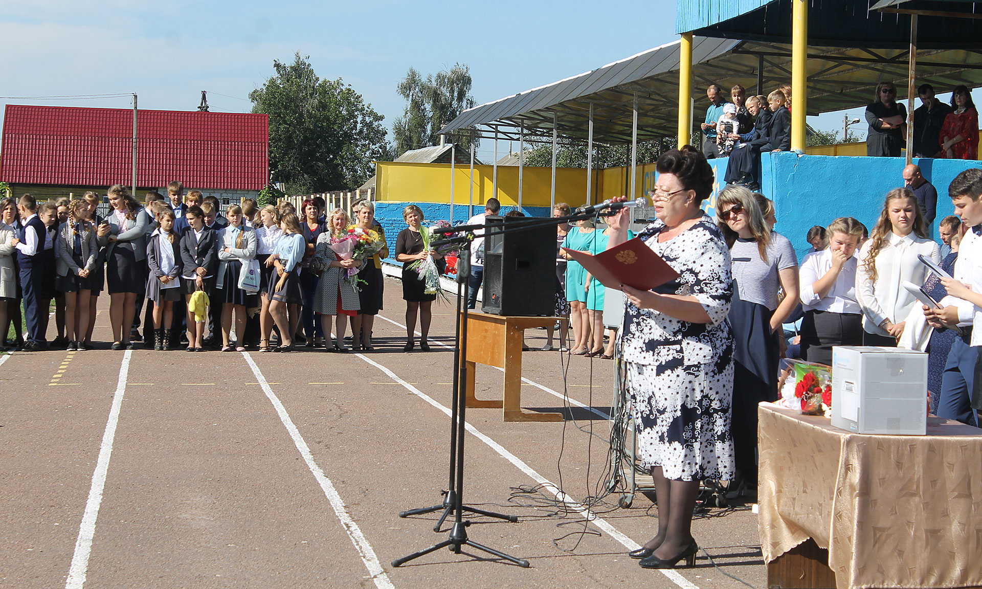 Первым своих учеников, коллег, родителей, гостей с началом учебного года поздравил директор школы Владимир Прокопцев. На линейке присутствовали почетные гости. Заместитель Губернатора Брянской области Галина Петушкова передала теплые слова поздравлений и пожеланий учителям, ребятам, родителям от Губернатора области Александра Богомаза.