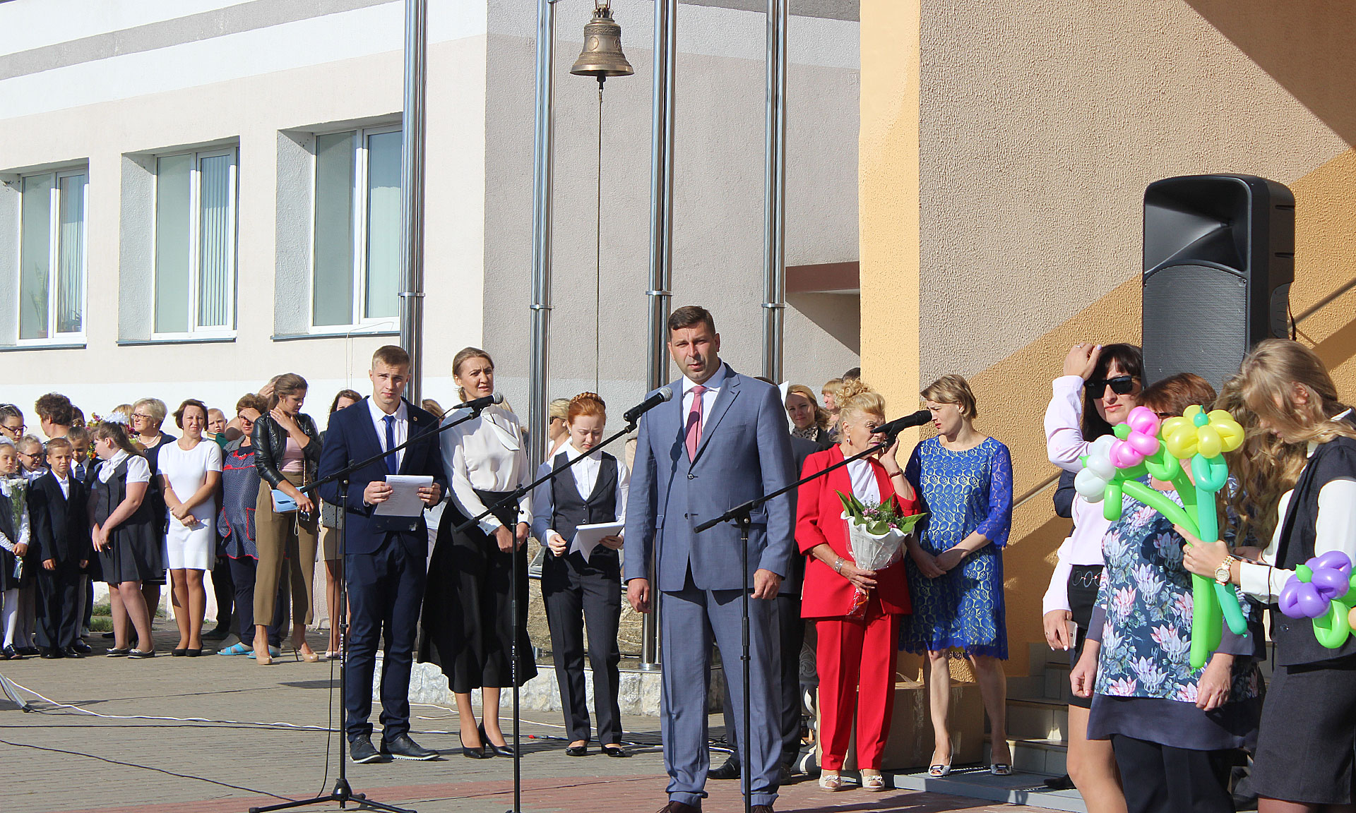 В приветственном слове Сергея Жилинского прозвучали поздравления с началом нового учебного года для учителей, учеников и их родителей. Он пожелал школьникам успеха в приобретении знаний, новых побед в конкурсах, олимпиадах и спортивных соревнованиях. Учителям — благодарных учеников, родителям — терпения.