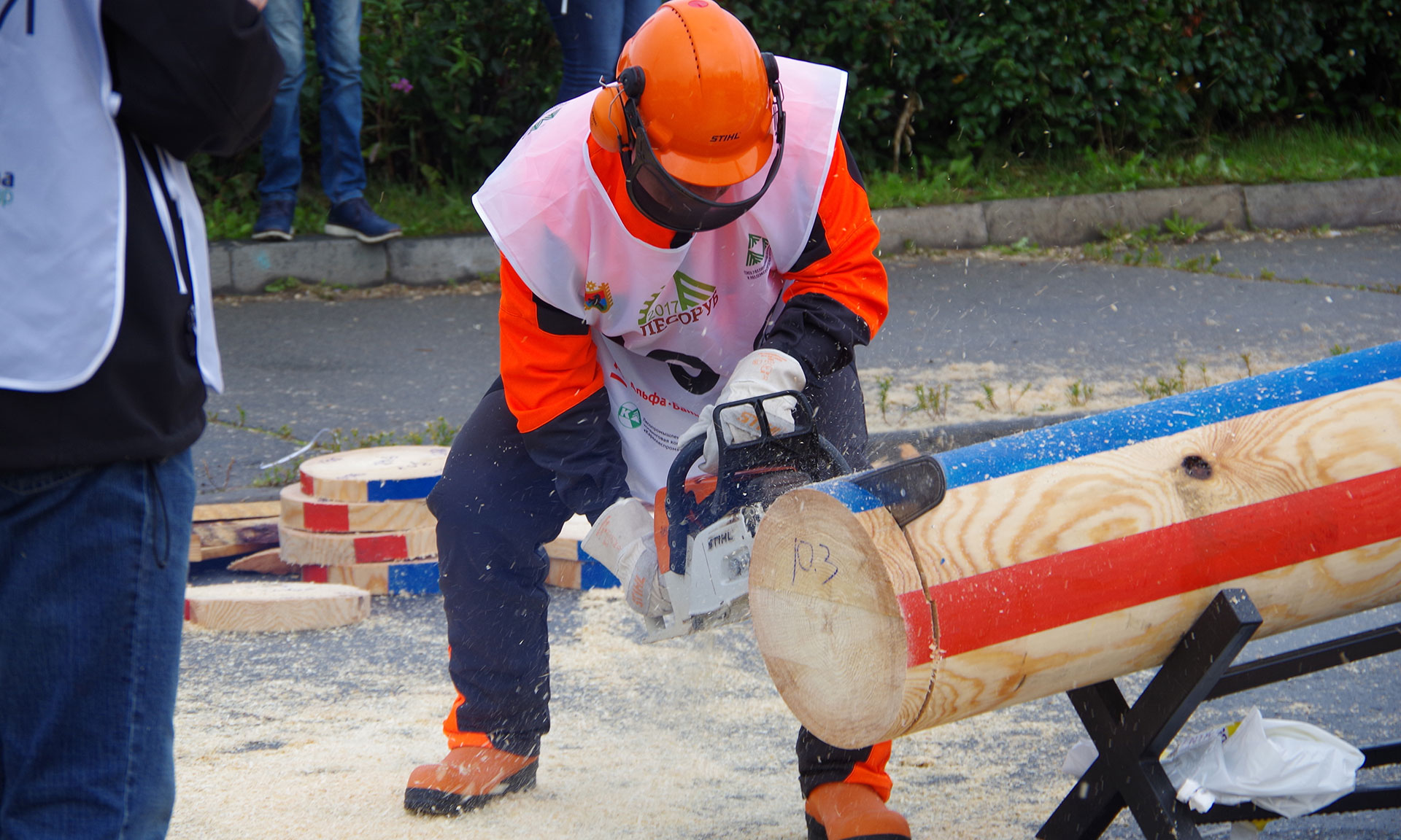 Программа соревнований состояла из пяти этапов: валка дерева, замена цепи бензопилы, раскряжевка комбинированным резом, точная раскряжевка и обрезка сучьев.