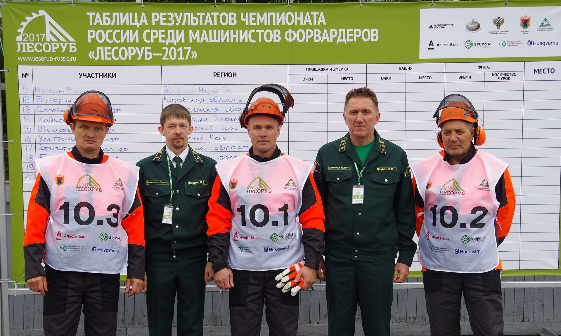 Брянскую область представляли Сергей Трошин (ГКУ Брянской области «Брянское лесничество»), Владимир Буянов (ООО ЛПК «Навля») и Сергей Козорез (ООО «ДОЦ»). Кроме этого, в мероприятиях чемпионата приняли участие начальник управления лесами Брянской области Владимир Дзубан и его заместитель Павел Шматов.