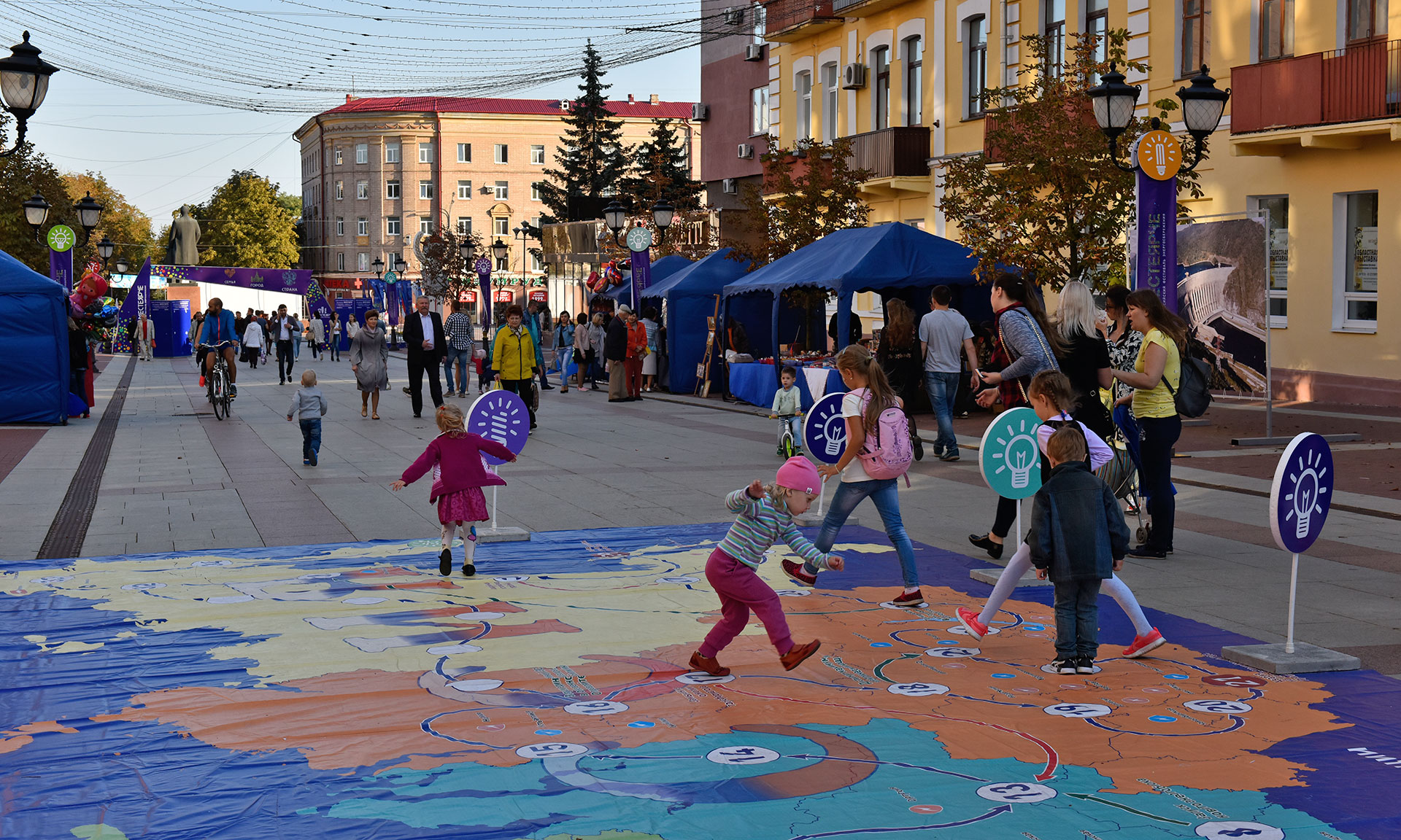 Главными площадками фестиваля в Брянске стали интерактивные территории «Семья», «Страна», «Планета детства», «Бульвар энергоэффективных технологий», где были представлены современные энергосберегающие технологии, используемые в каждом доме, предприятии и стране в целом.
