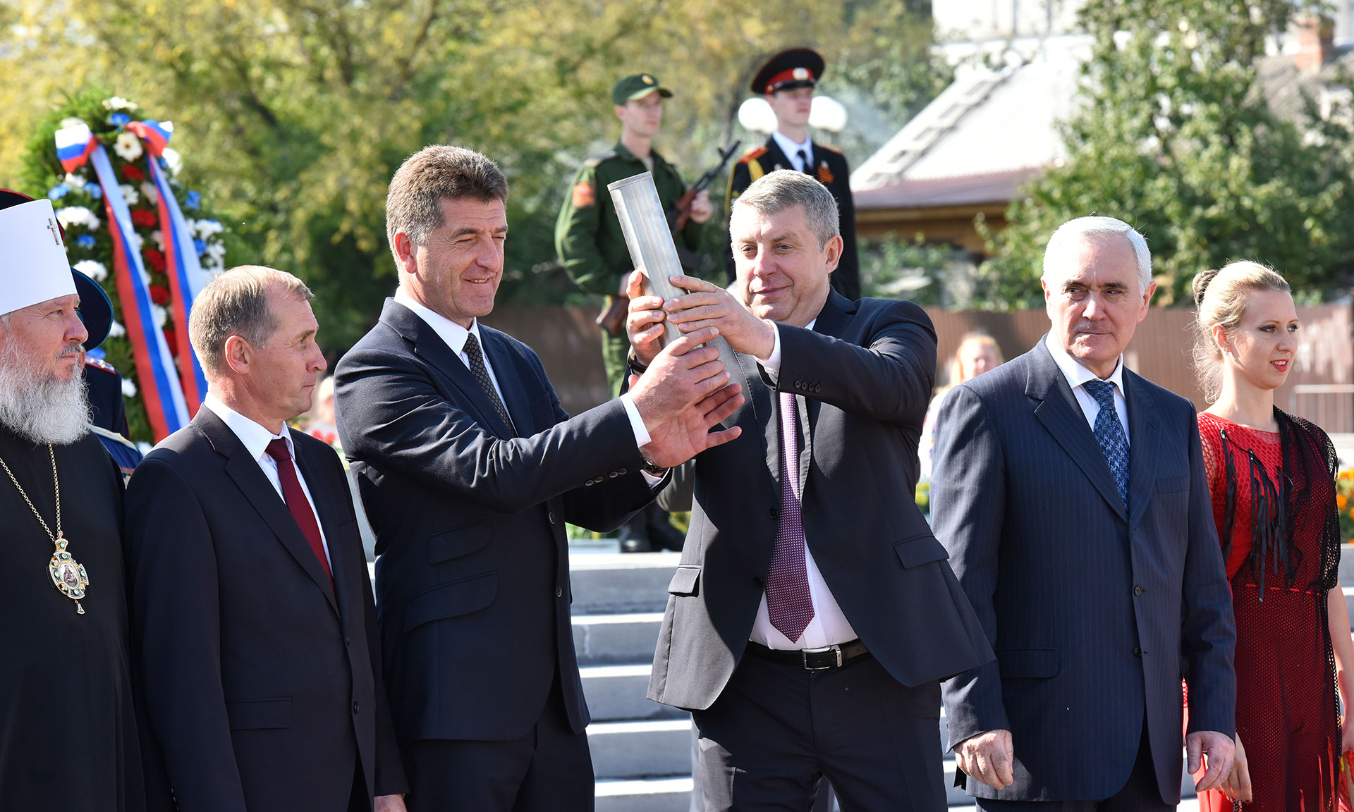 17 сентября в День города Брянска почетные гости праздника, жители Брянска, ветераны стали свидетелями уникального события — закладки «Капсулы времени». В торжественной церемонии закладки капсулы приняли участие заместитель полномочного представителя Президента РФ в ЦФО Мурат Зязиков, Губернатор Брянской области Александр Богомаз, председатель Брянской областной Думы Владимир Попков, член Совета Федерации ФС РФ Екатерина Лахова, депутаты Государственной Думы Валентин Суббот, Валентина Миронова, Виктор Дзюба, избранный депутат Государственной Думы ФС РФ Борис Пайкин, заместитель руководителя аппарата фракции Всероссийской политической партии «Единая Россия» в Государственной Думе Илья Ананьев, митрополит Брянский и Севский Александр, епископ Клинцовский и Трубчевский Владимир, ветеран Великой Отечественной войны из Сумской области Николай Васильевич Кабанов, Герой Социалистического Труда Георгий Константинович Лобус, Герой Советского Союза Иван Андреевич Кашин, председатель Брянского областного совета ветеранов войны, труда, Вооруженных Сил и правоохранительных органов Сергей Алексеевич Панков, председатель Брянской общественной организации ветеранов войны и военной службы Василий Петрович Бударин, Герой России Александр Постоялко, прокурор Брянской области Александр Войтович, начальник УФСБ России по Брянской области Сергей Блинов, начальник УМВД России по Брянской области Валентин Кузьмин, председатель Брянского областного суда Евгений Быков, начальник пограничного управления ФСБ России по Брянской области Сергей Станкевич, начальник Центра специальной связи и информации Федеральной службы охраны РФ в Брянской области Олег Бельский, начальник УФСИН по Брянской области Сергей Поршин, и.о. руководителя УФССП по Брянской области Елена Бывшева, глава города Брянска Александр Хлиманков, глава Брянской городской администрации Александр Макаров, заместители Губернатора, депутаты Брянской областной Думы.