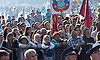 — Уважаемые гости, дорогие ветераны, жители Брянска и Брянщины, я всех сердечно приветствую на этой площади и поздравляю с этим историческим событием, которое совершается пред нашими глазами. Мы отправляем послание грядущим потомкам, в котором просим их, взирая на подвиг нашей жизни, на то, что мы так горячо служим нашей Родине, мы просим из также хранить заветы своих дедов и отцов, быть верными, и с любовью верно служить своему народу!