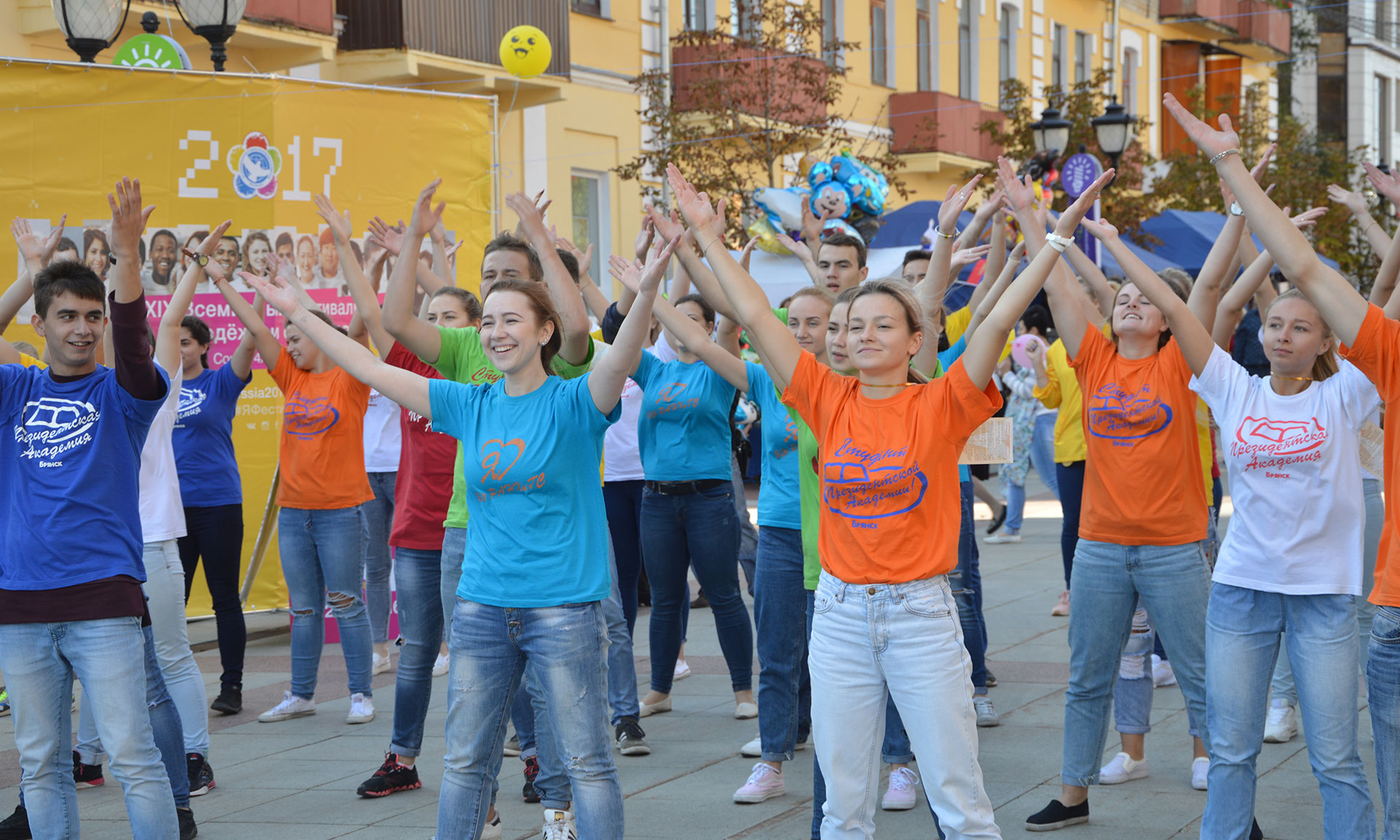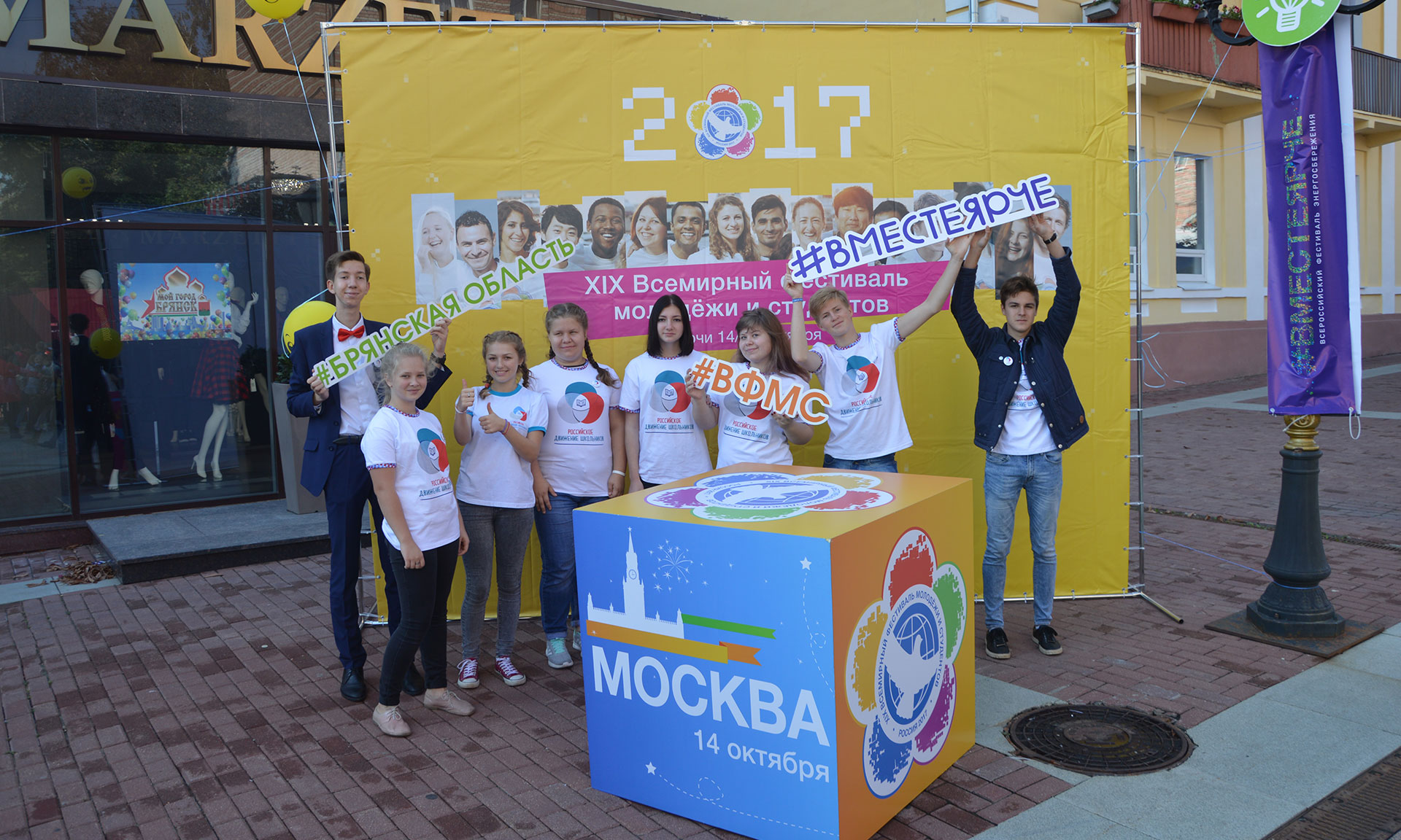 Именно эта активная молодежь презентовала 17 сентября на бульваре Гагарина в Брянске площадку XIX Всемирного фестиваля молодежи и студентов. Ребята провели викторины на знание истории фестивального движения, истории России и родного края. Студенты Брянского филиала Российской академии народного хозяйства и государственной службы при Президенте РФ пригласили всех принять участие в флешмобе.